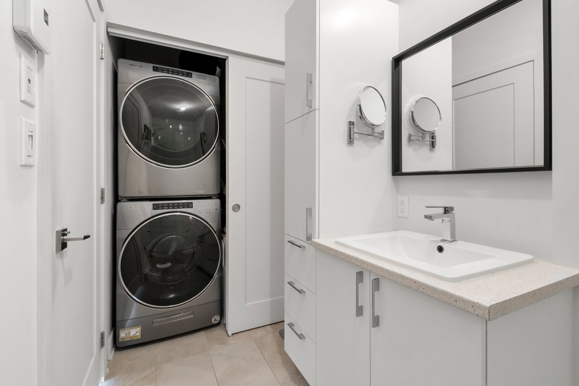 - Refrigerator, oven, dishwasher, motorized blinds on all windows, bedroom light fixtures, wall-mounted air conditioner, air exchanger, wooden wall shelves in the living room and dining room.
