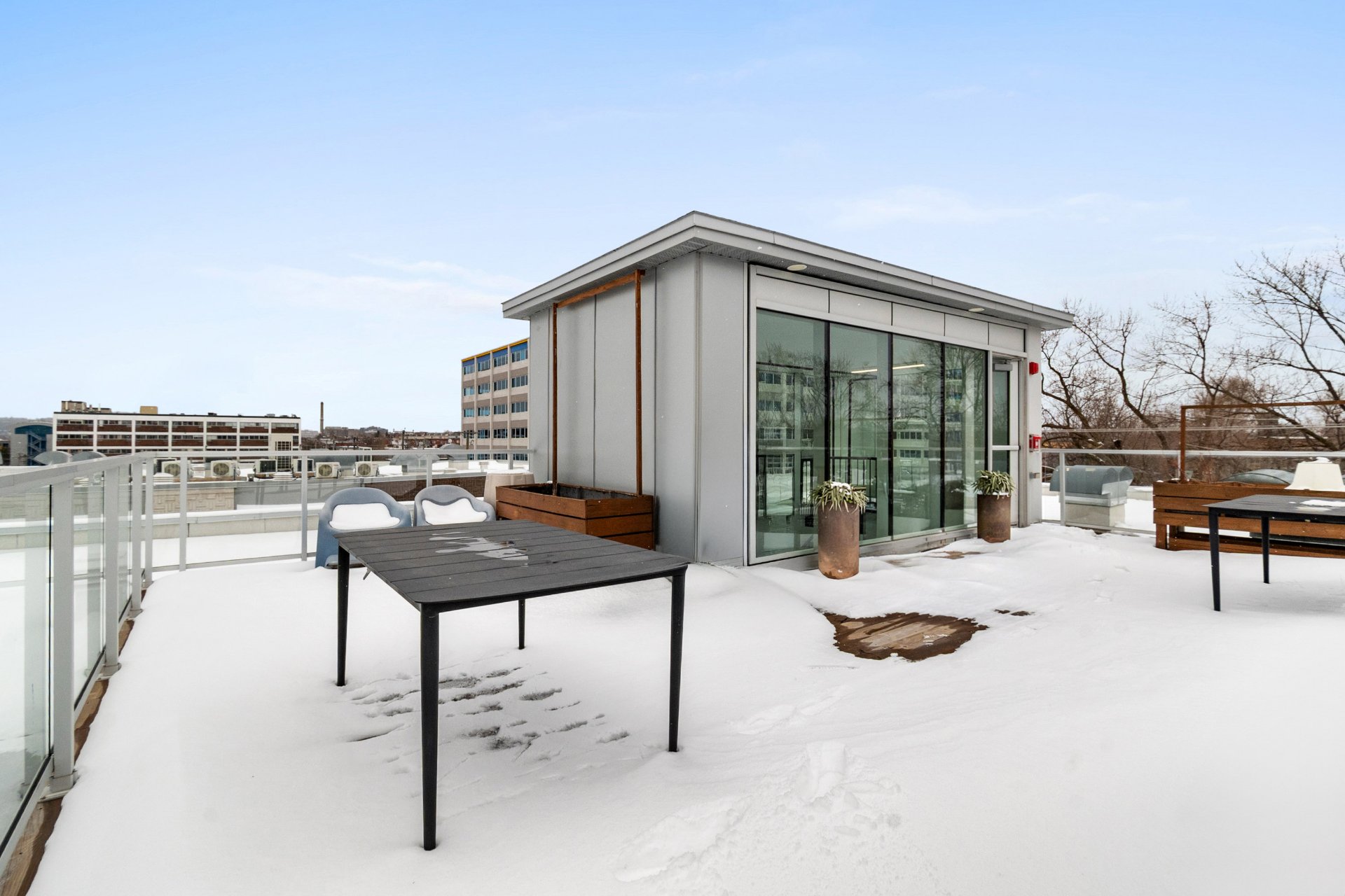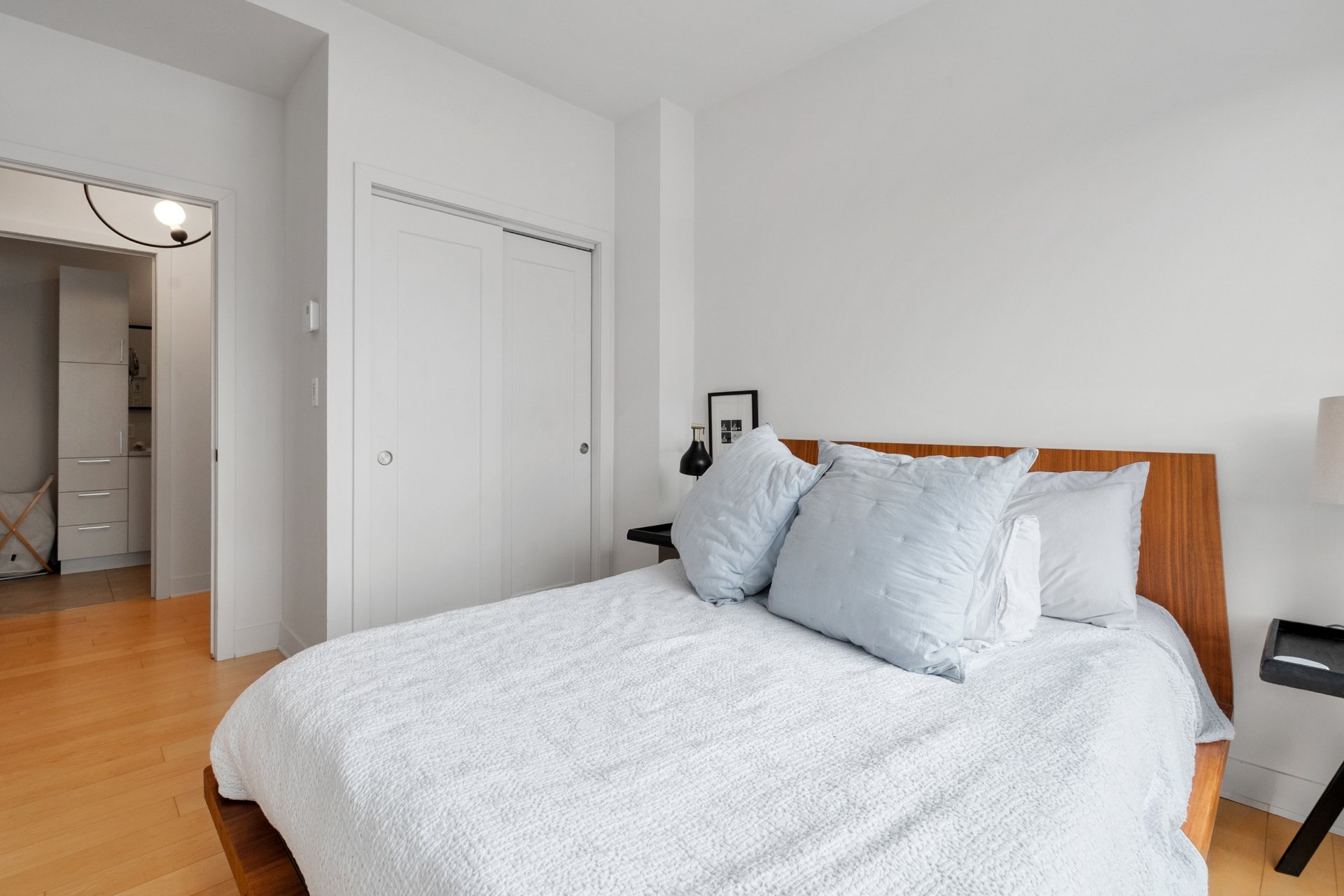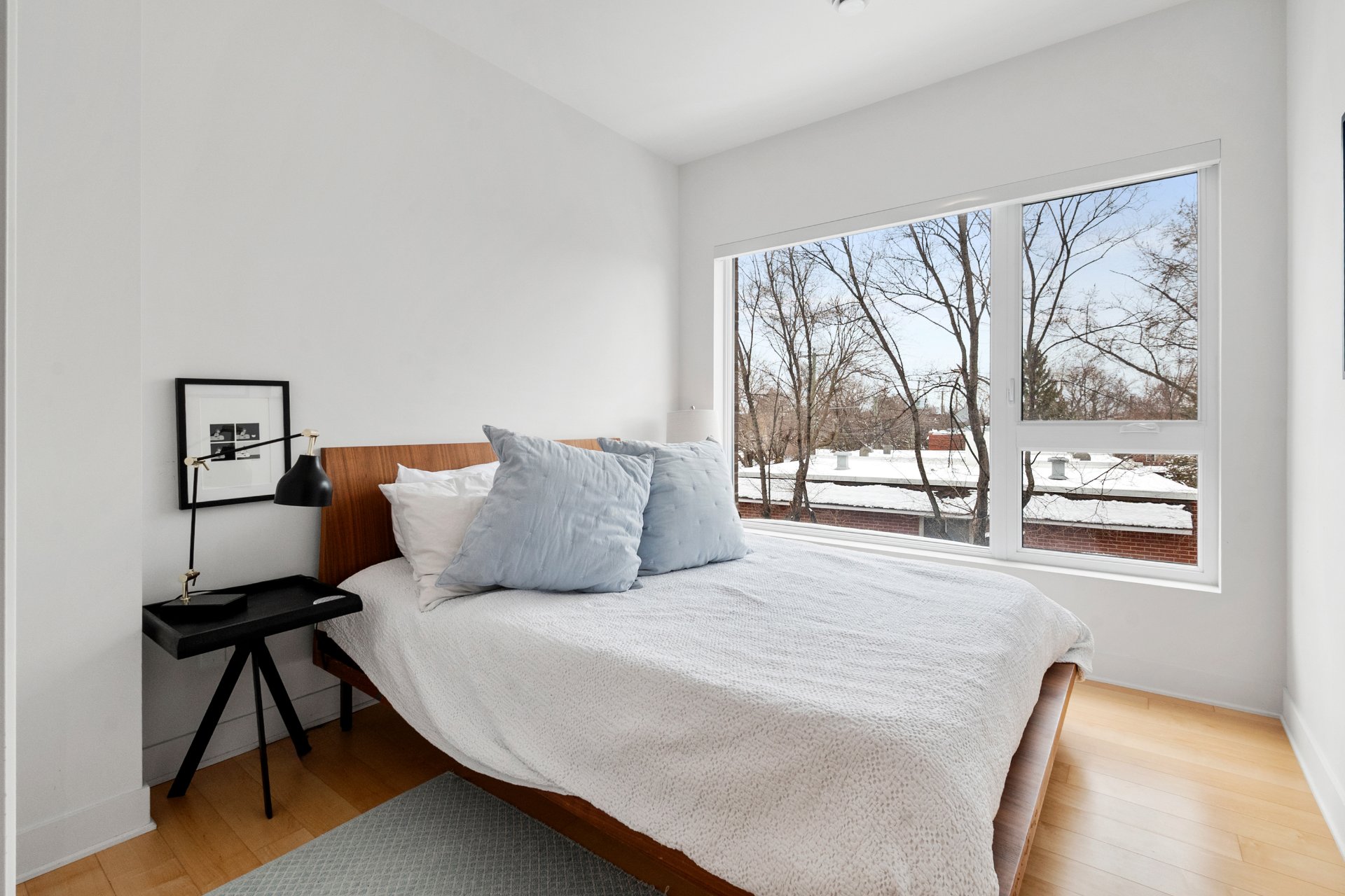 Stunning two-bedroom corner unit overlooking Rosemont Park with no neighbors in front. It is the largest condo of the Aera project. RARE ON THE MARKET!!! Unit located on the top floor. The kitchen, the dining room and living room overlook the park. The bedrooms overlook the trees in the alleyway, very peaceful.