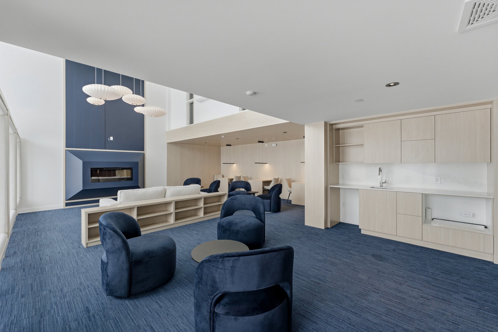 Common areas including a rooftop pool with BBQ terrace, full indoor gym, co-working space with WIFI, lounge and a 95 000 sqft courtyard that includes outdoor training space, bocce ball court, dog park, seating areas and communal garden.