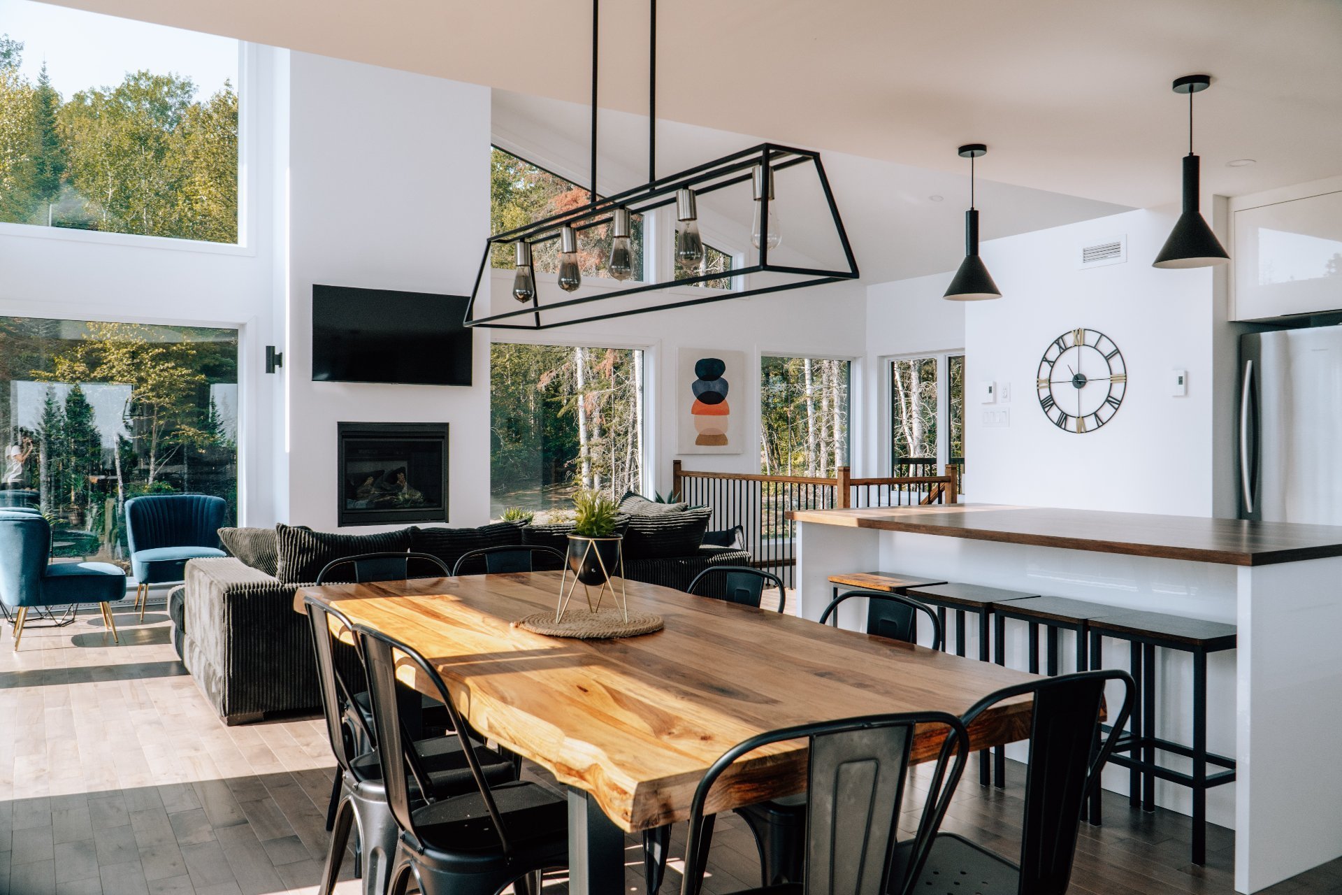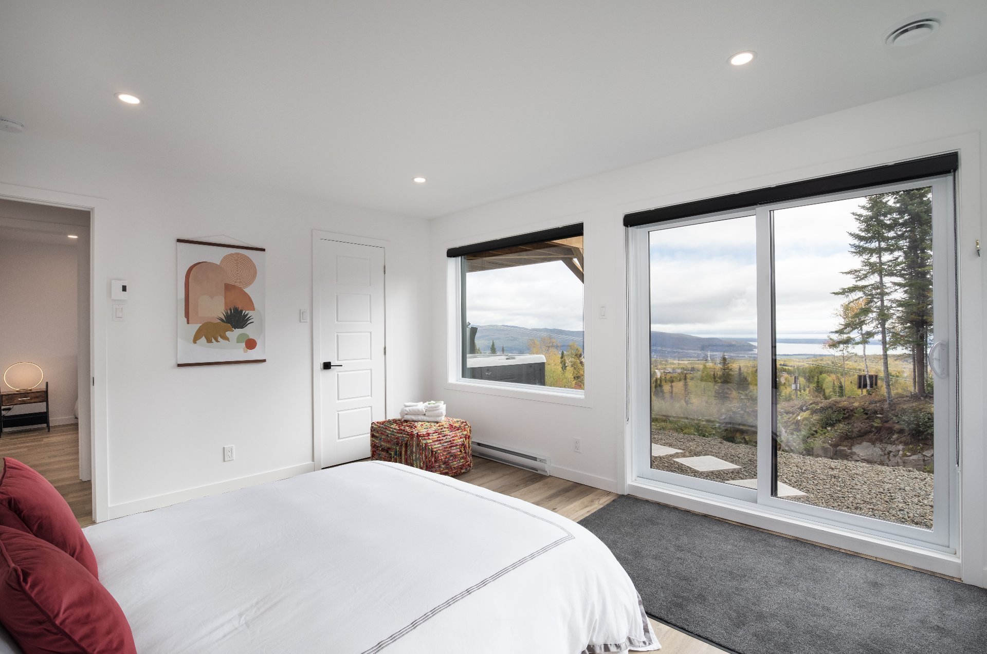 Exceptional property with breathtaking views of Baie-St-Paul & the St. Lawrence River. Built in 2021, still under warranty, offering 3 bedrooms and 1+1 bathrooms. Ideal for investors or nature lovers, this turnkey property is sold fully furnished. It also has rental permits from the city and CITQ transferable to the next buyer. The house offers a spacious and inviting living space. The living room is filled with beautiful light thanks to its cathedral ceiling. The kitchen offers plenty of storage and a perfect island for entertaining. A spa has been installed to enjoy the idyllic setting