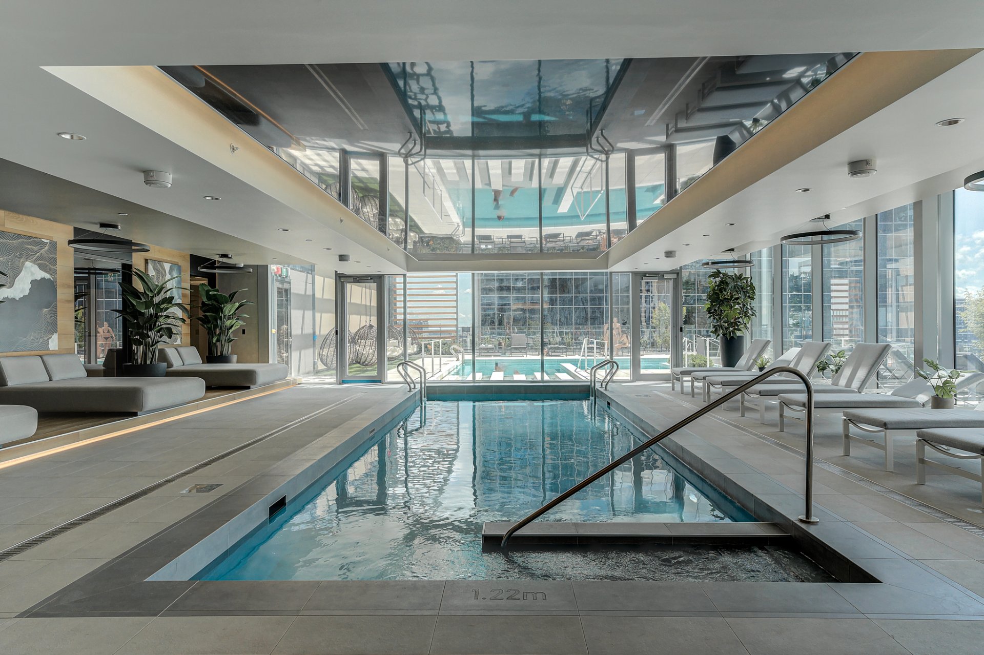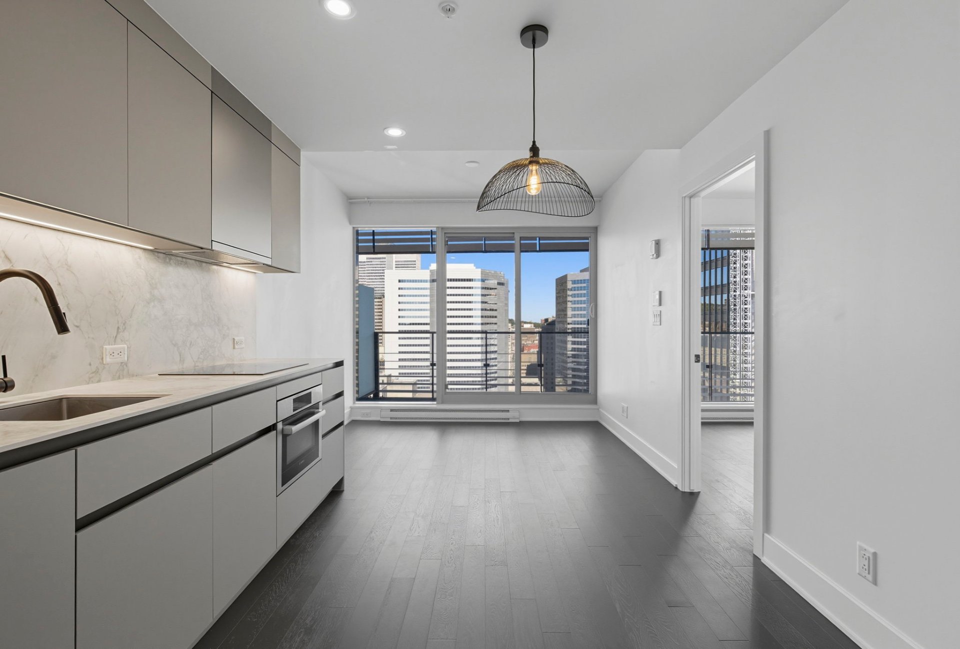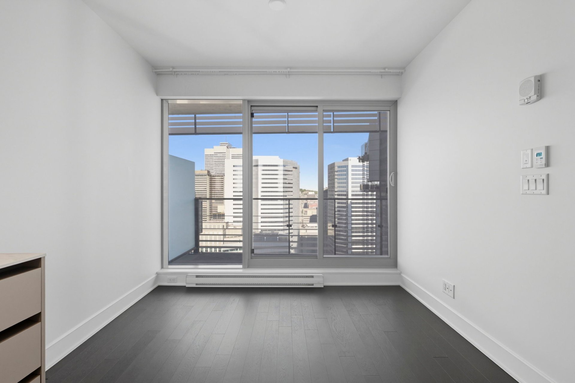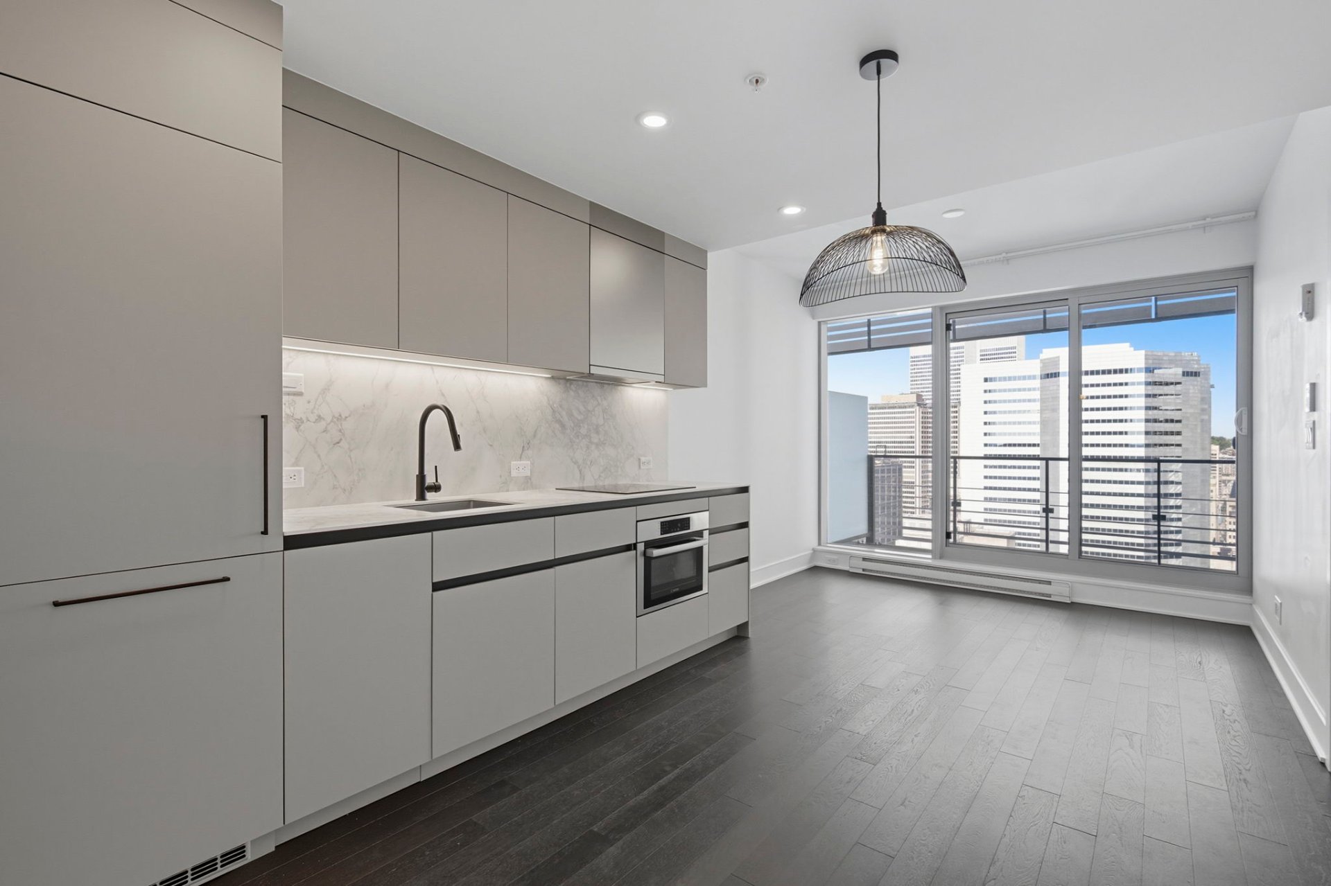 **VICTORIA SUR LE PARC** Semi-furnished one-bedroom condo with spectacular views. Features a very modern and well-equipped kitchen, a spacious bathroom, a green rooftop terrace with a barbecue and relaxation areas, and an indoor and outdoor pool. Located steps from downtown, Atwater Market, Notre-Dame Street, and Old Montreal. Just 2 minutes from the Square-Victoria metro station and 5 minutes from an IGA grocery store! Exceptional common areas--you'll be blown away! 24-hour doorman, terrace, gym, pool, and a beautiful lounge area. One locker included; garage available for an additional fee.