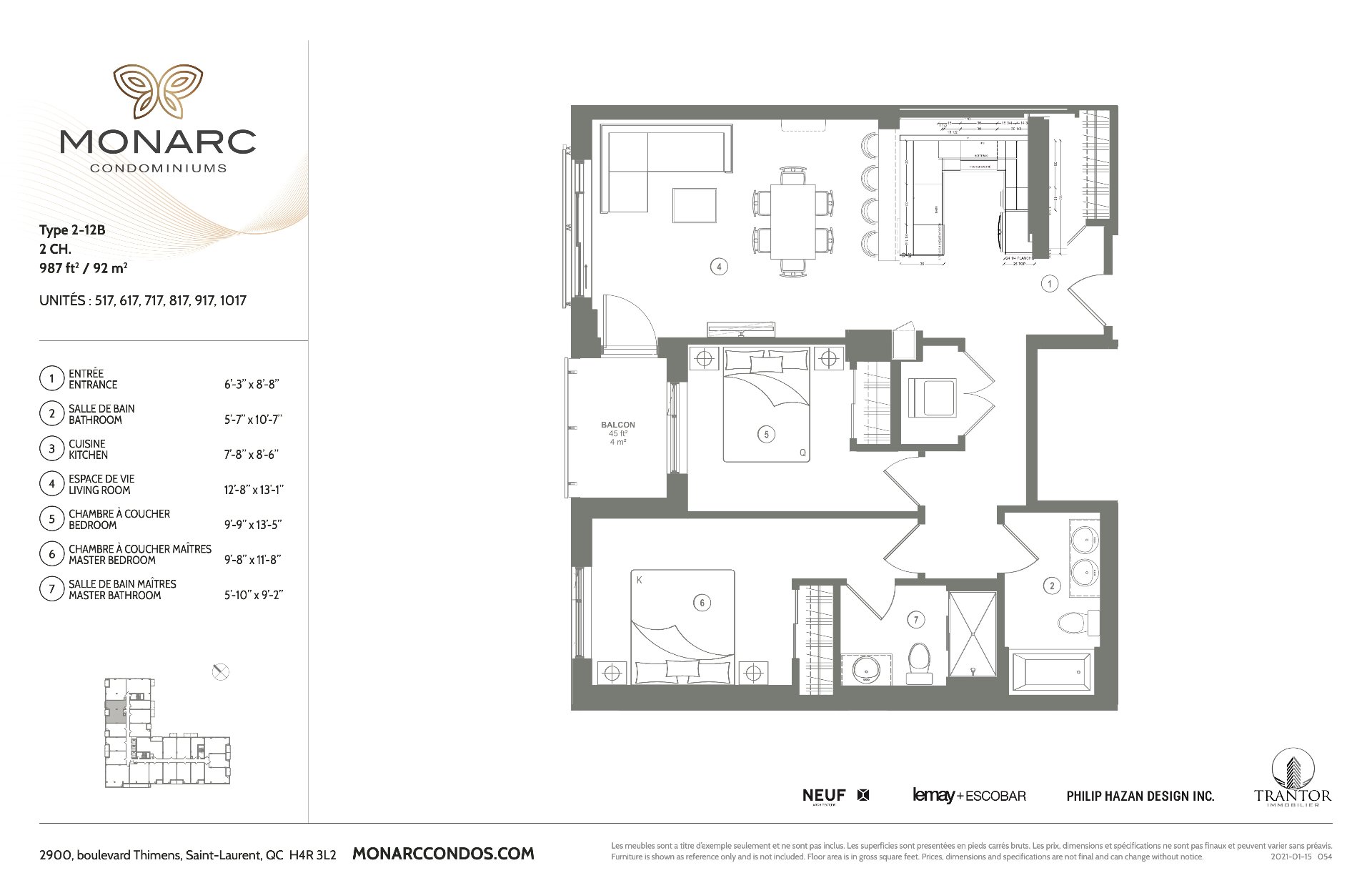 2 bedroom condo with a new kitchen! Welcome to MONARC CONDOS an exclusive project located in the heart of Ville Saint-Laurent. Designed by LEMAY + ESCOBAR, LEED certified. Come enjoy the most luxurious amenities, modern, quality finishes and perfect location. This project offers it all. An absolute dream. Parking space and locker are excluded from condo pricing and is subject to extra charge. Parking space: $42,000 + taxes, Locker price: $3,000 + taxes.