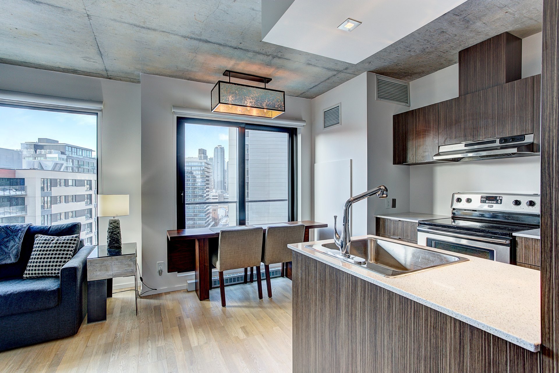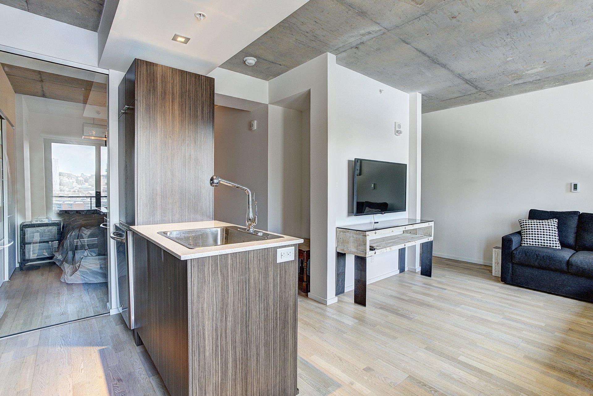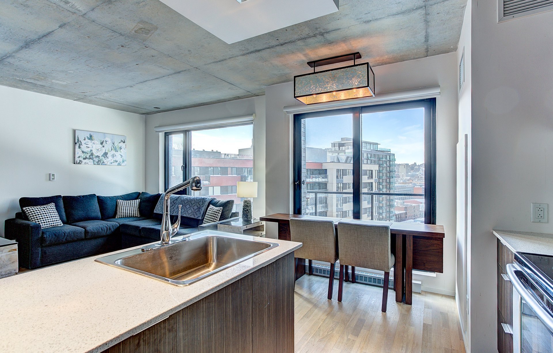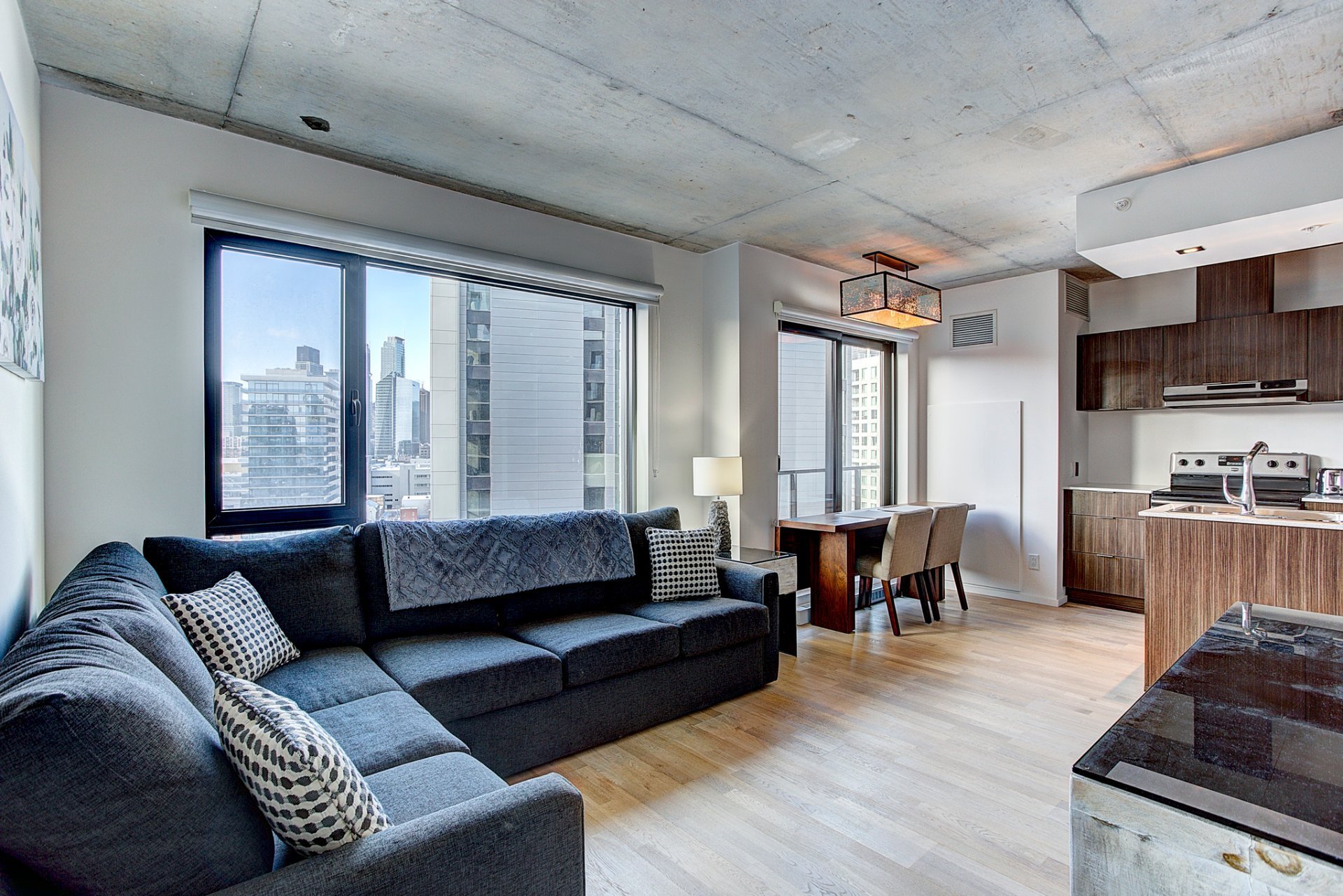 Beautiful 1 bedroom in the heart of Griffintown. Only few minutes from main highways (10-15-720) and walking distances from groceries and many other services.Rooftop terrace with swimming pool, sauna, gym and urban chalet with breathtaking views of Montreal.