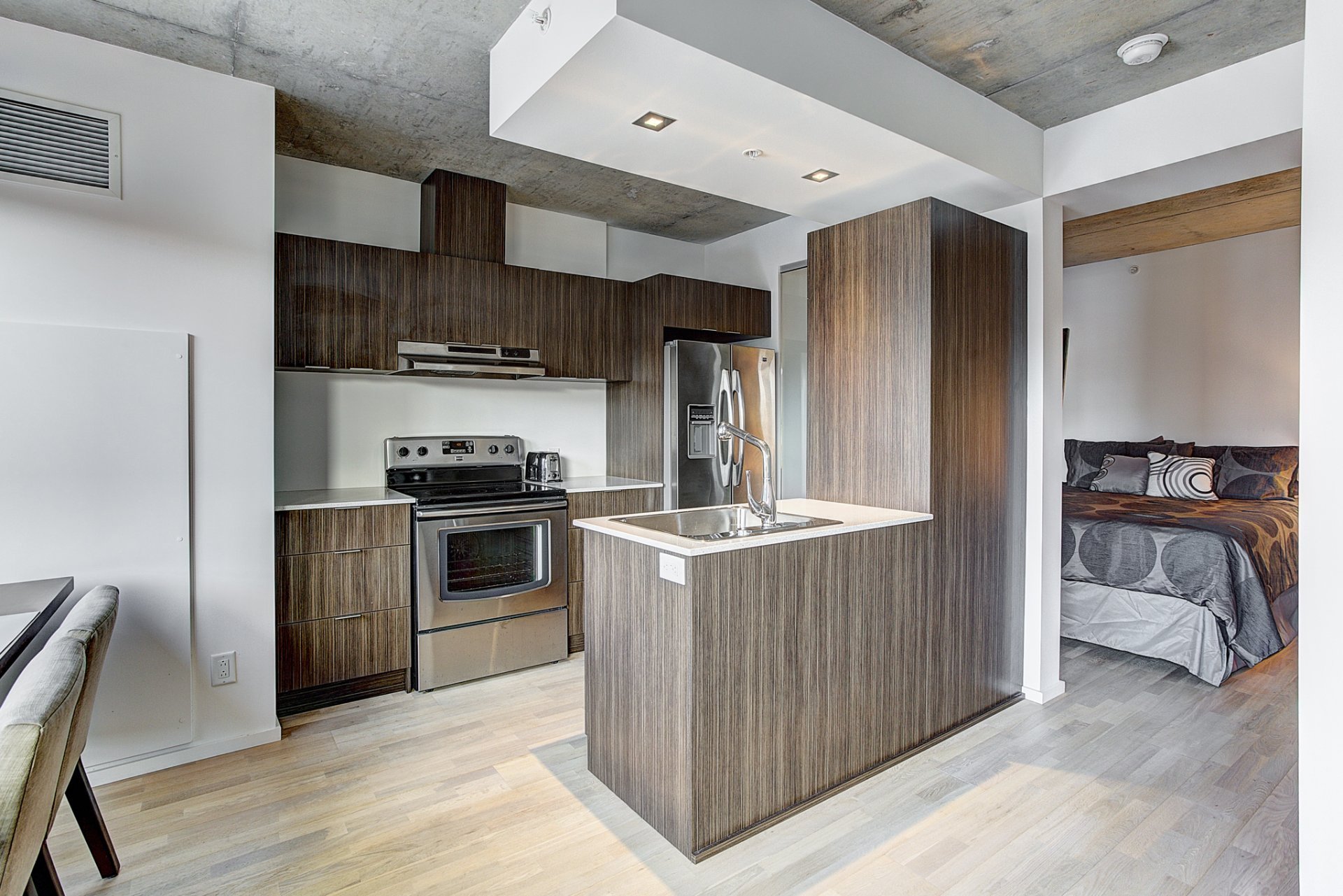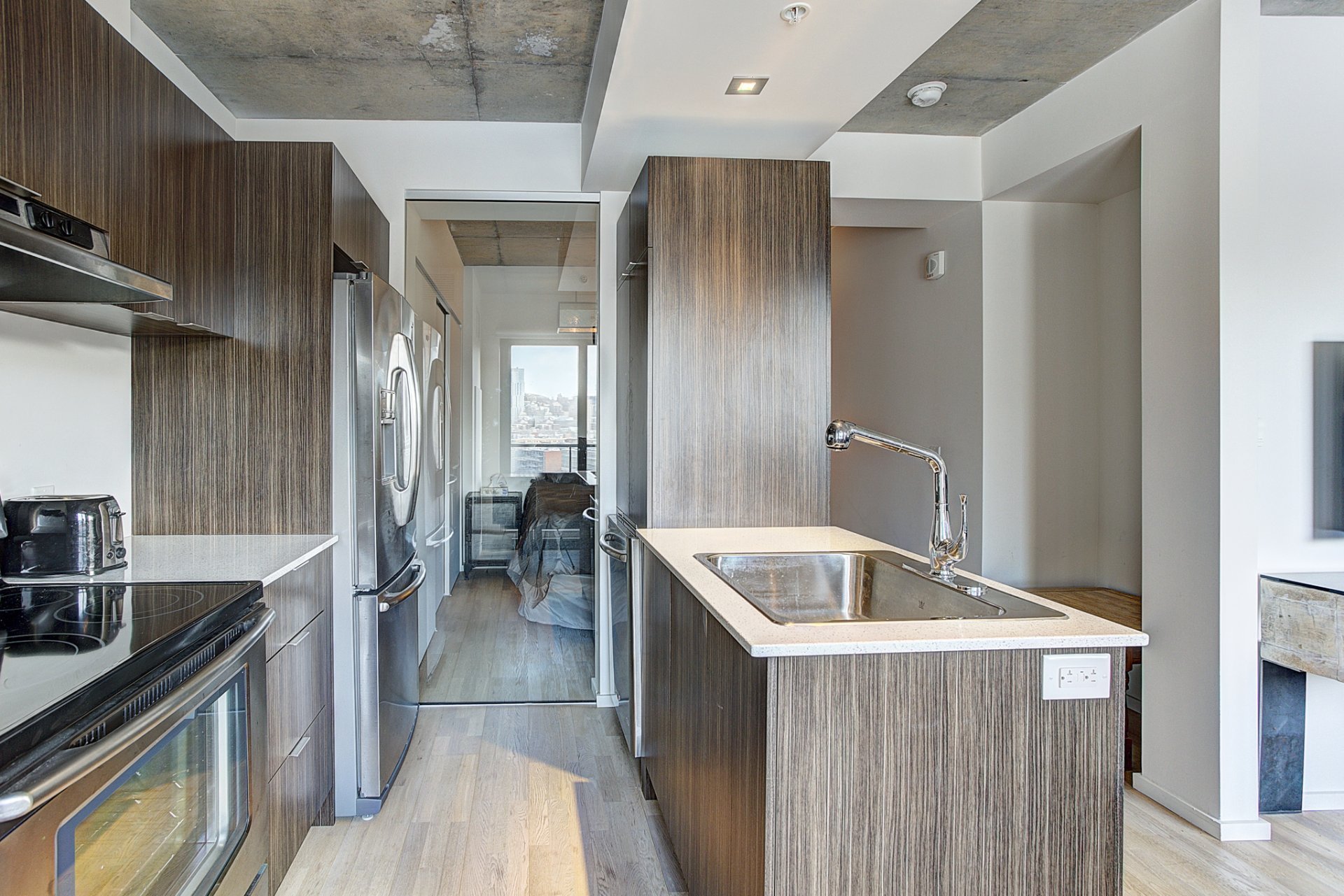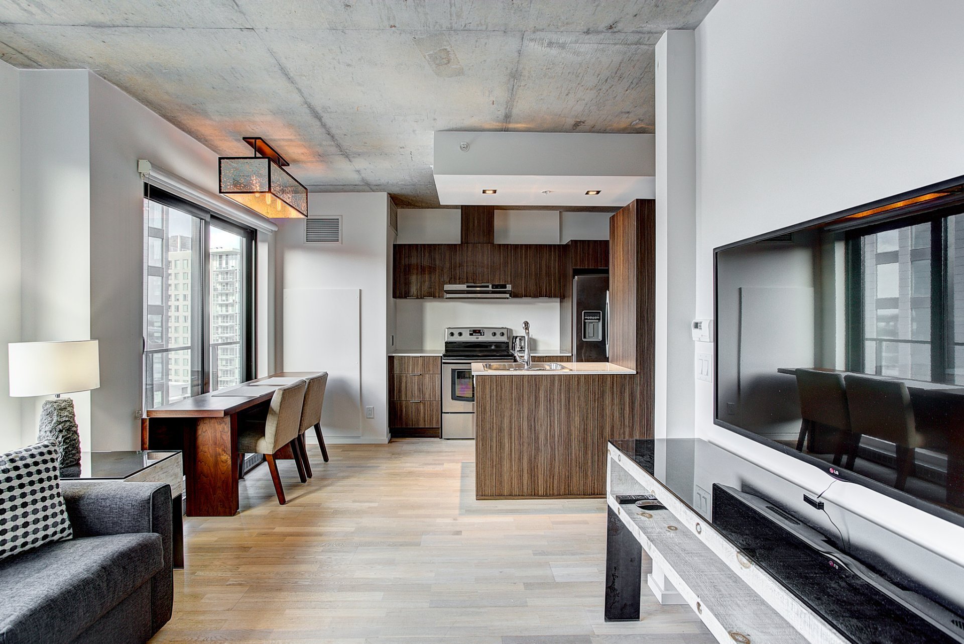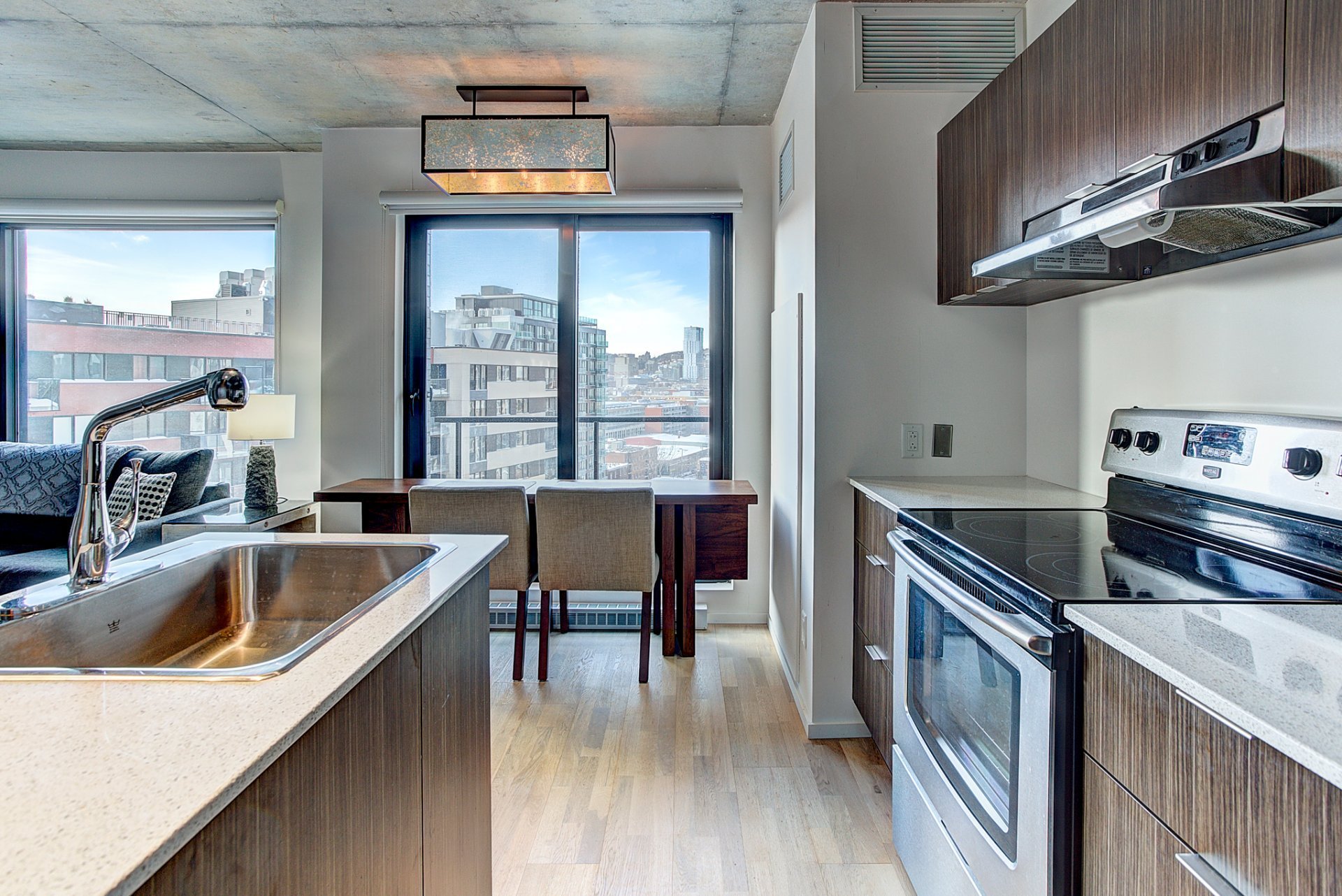 Beautiful 1 bedroom in the heart of Griffintown. Only few minutes from main highways (10-15-720) and walking distances from groceries and many other services.Rooftop terrace with swimming pool, sauna, gym and urban chalet with breathtaking views of Montreal.