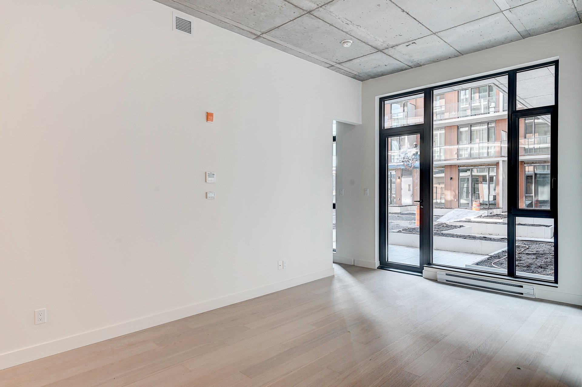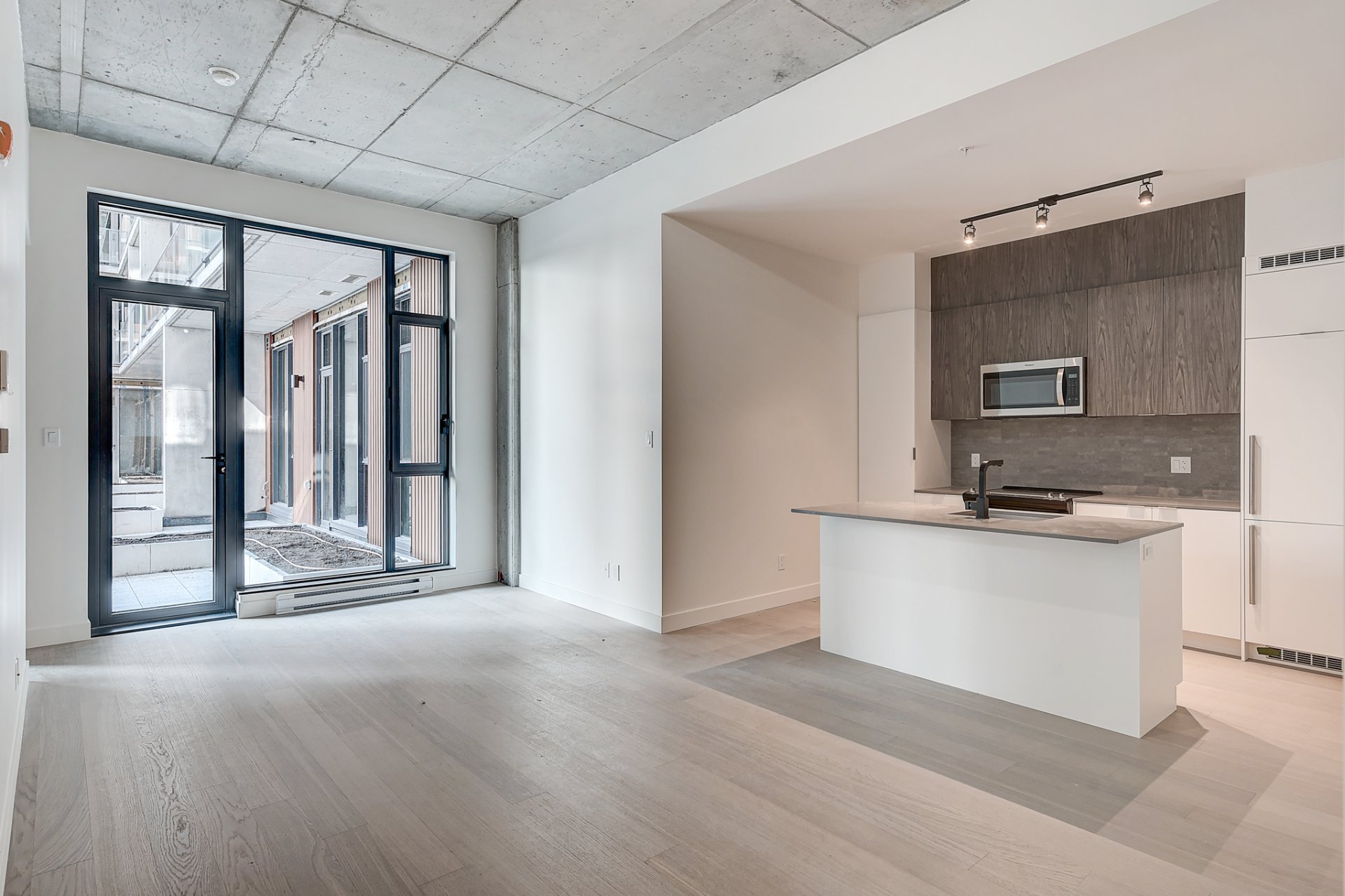 Possibility of Rent to Own* 90% of rent amount is used towards the purchase- 5% deposit required- Magnificent brand new Junior Suite condo of 2 bedrooms in the luxurious and avant-garde Cité Midtown project. This ccondo is located on the ground floor, with 11 foot high ceiling, floor to ceiling windows, large private terrace, all high-end appliances included. Several options have been added to the condo, such as: high- end finishes, upgraded flooring throughout, a glass tub/shower, a built-in microwave/fan and a quartz backsplash. Prime location, located less than 10 minutes walk from the metro and the future Royalmount.