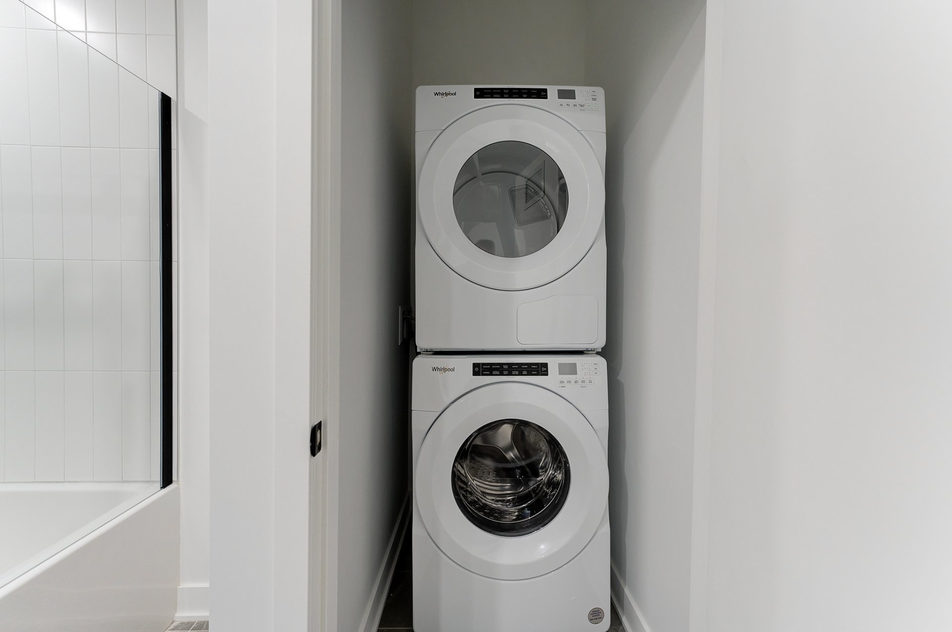 - integrated appliances (oven, stove, microwave, refrigerator, dishwasher, washer, condensing dryer).