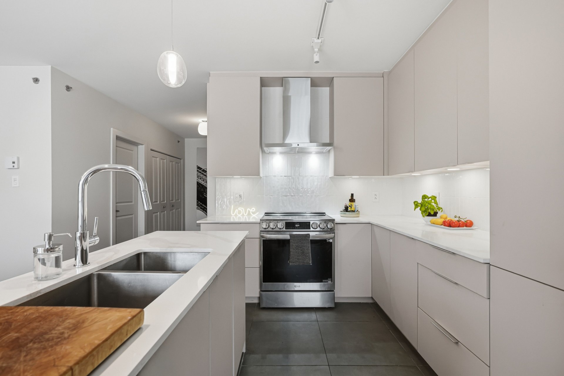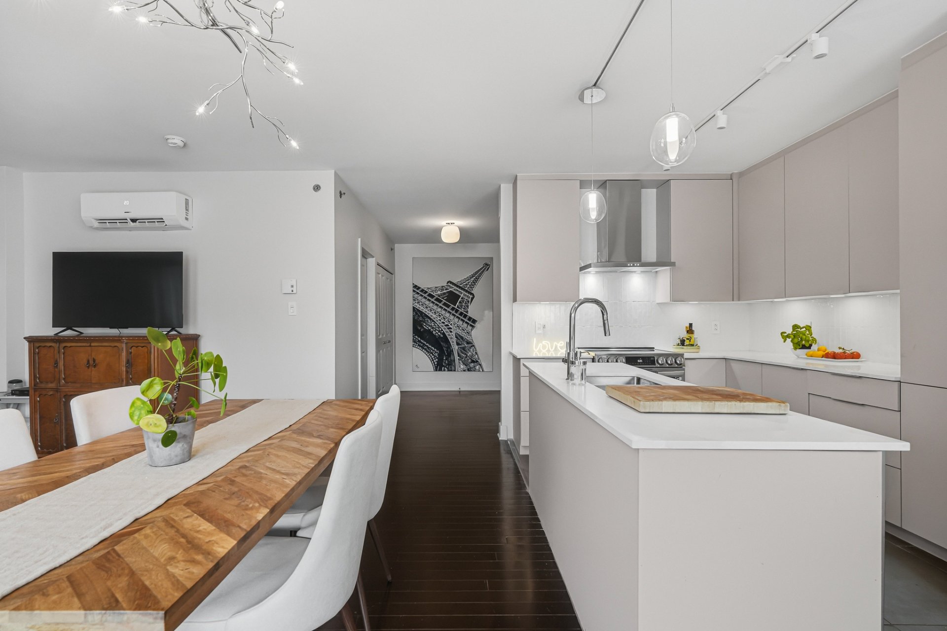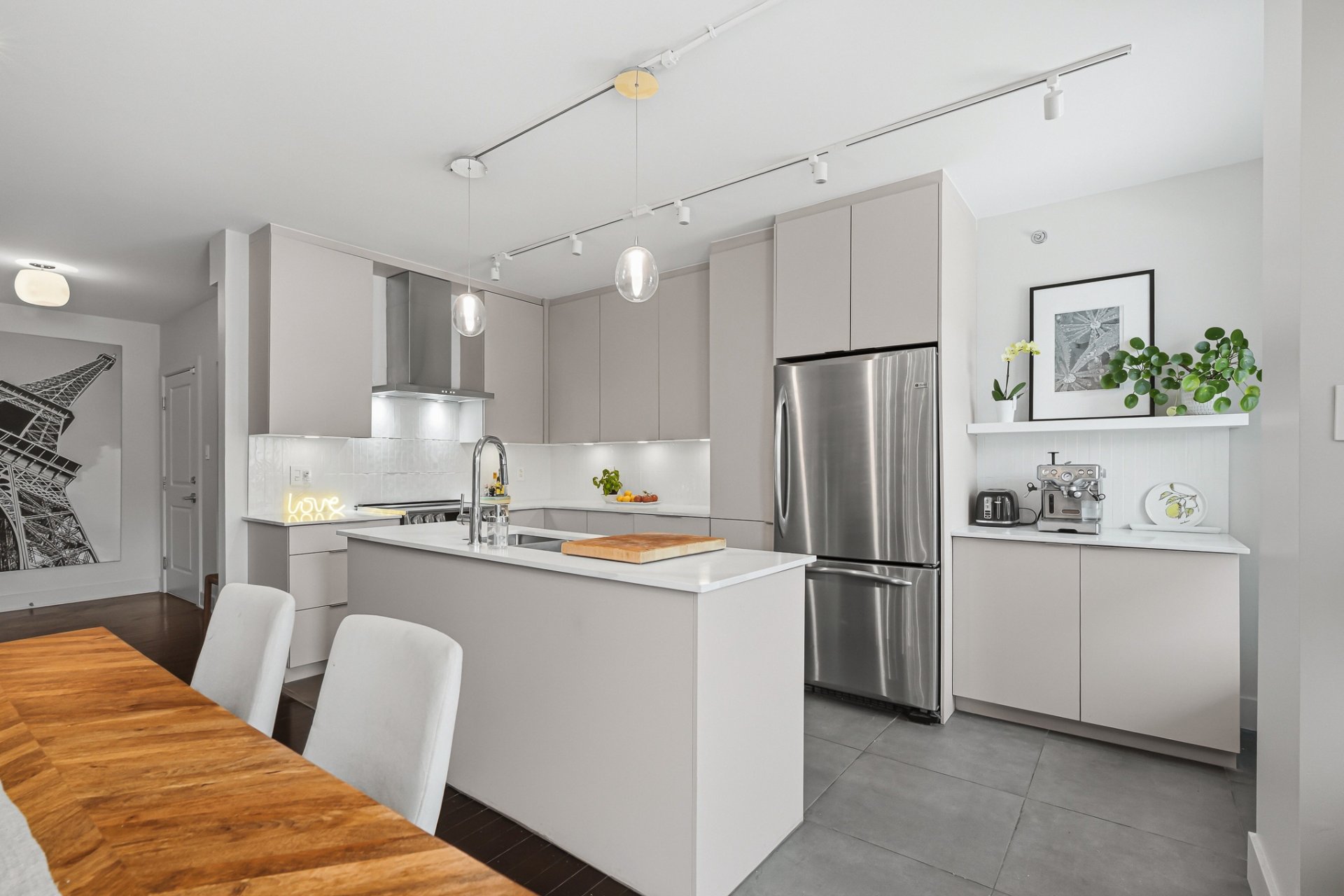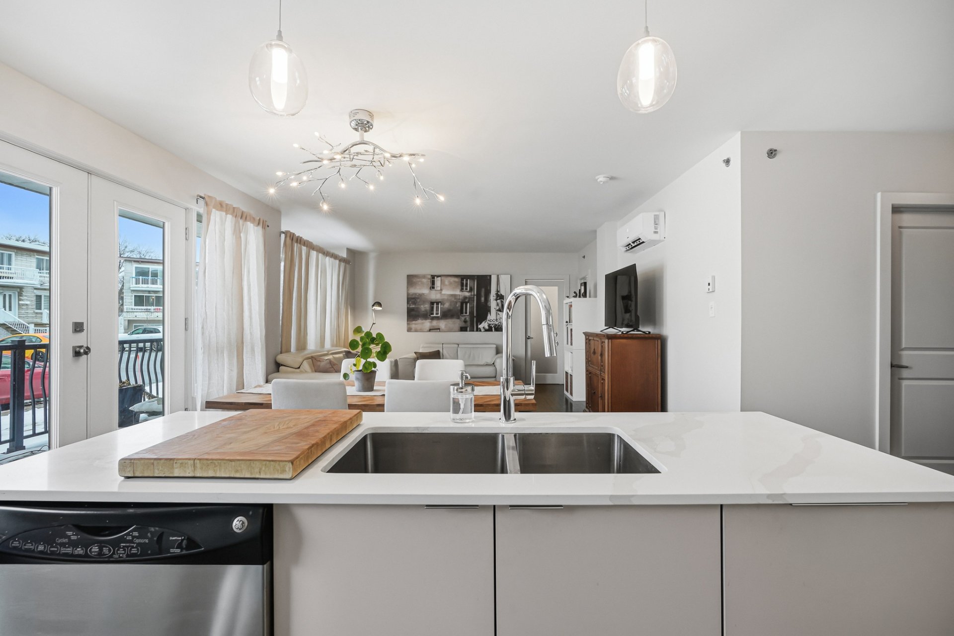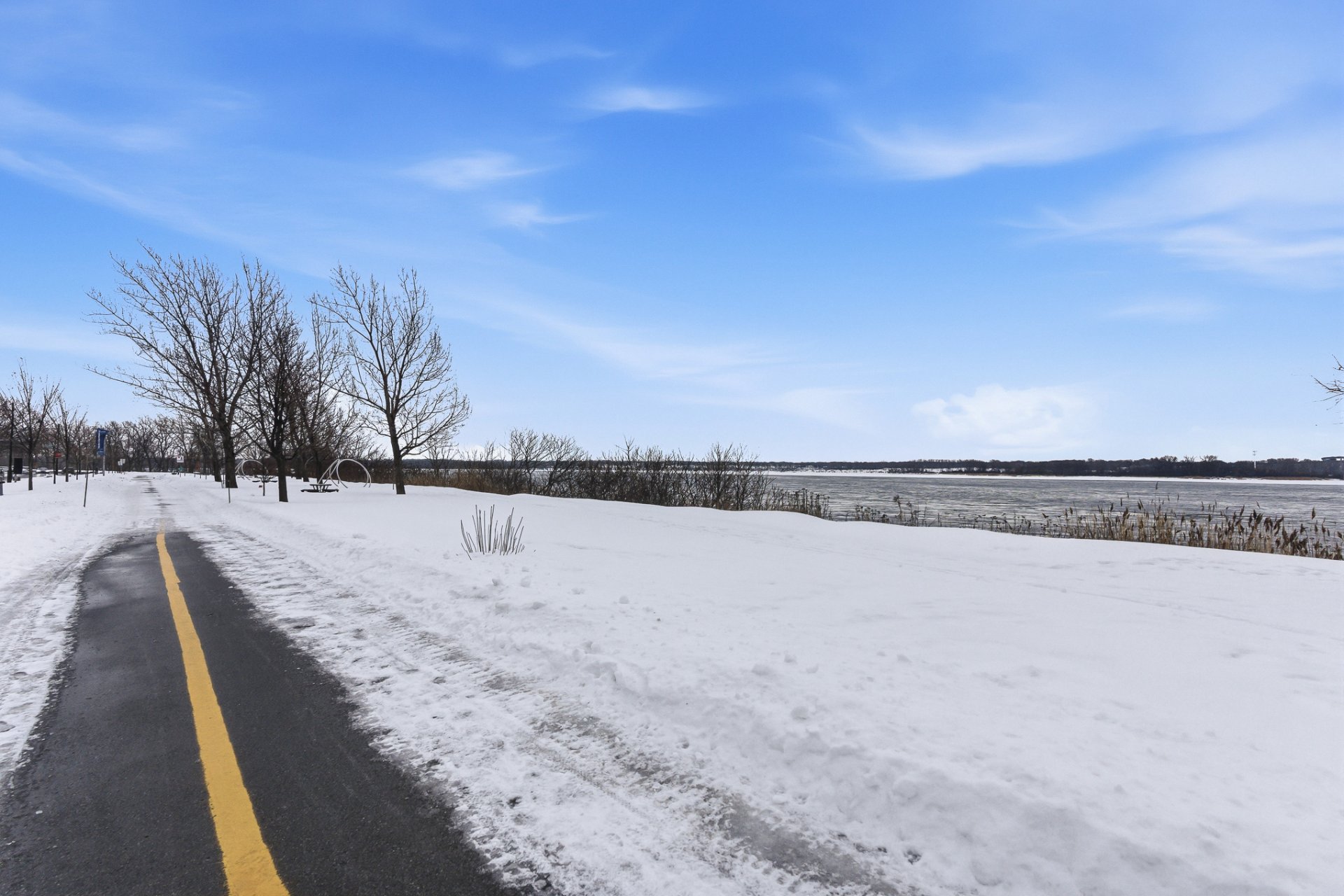 Spacious ground-floor condo located in a sought-after area of LaSalle. Bright open-concept layout combining kitchen, dining area, and living room. Modern kitchen with a large central island, quartz countertops, and ample storage. Two well-sized bedrooms, including a primary bedroom with an ensuite bathroom, plus a second full bathroom. Two indoor parking spaces, a rare and valuable feature. Common rooftop terrace. Bike path directly in front of the building, perfect for enjoying scenic rides along the waterfront. Prime location close to services, parks, schools, and public transportation.