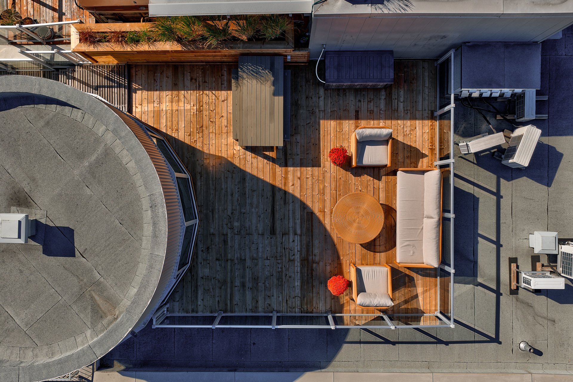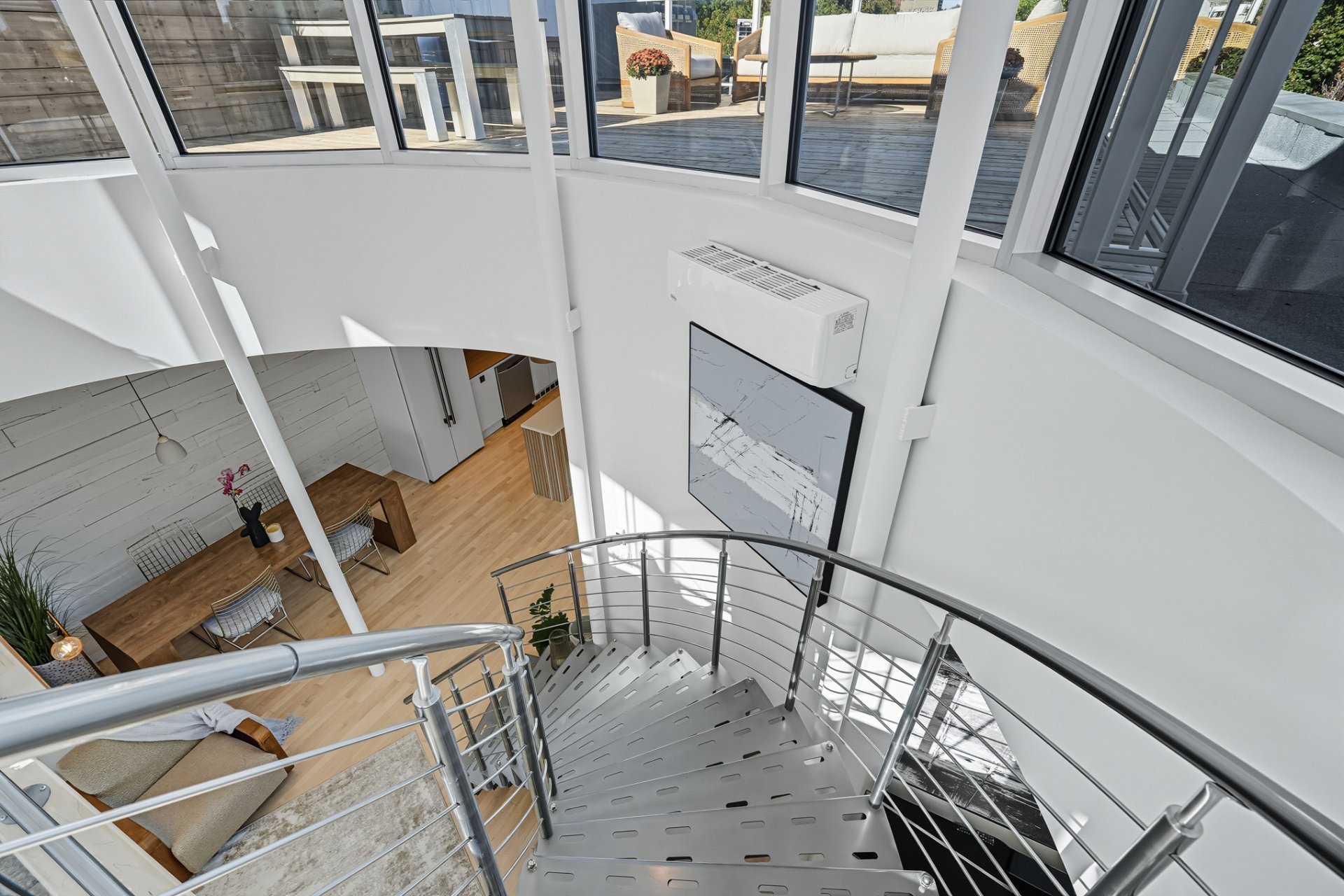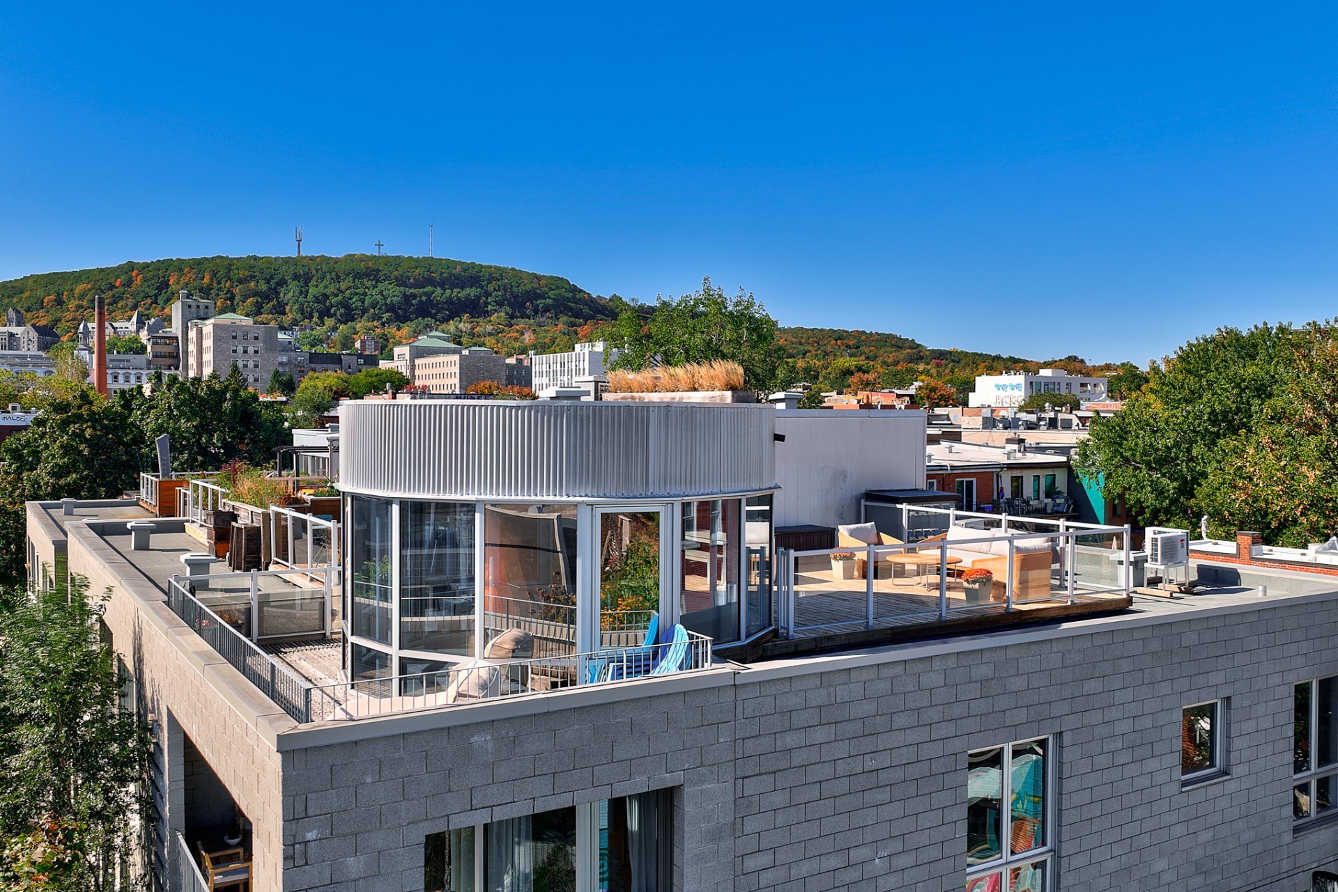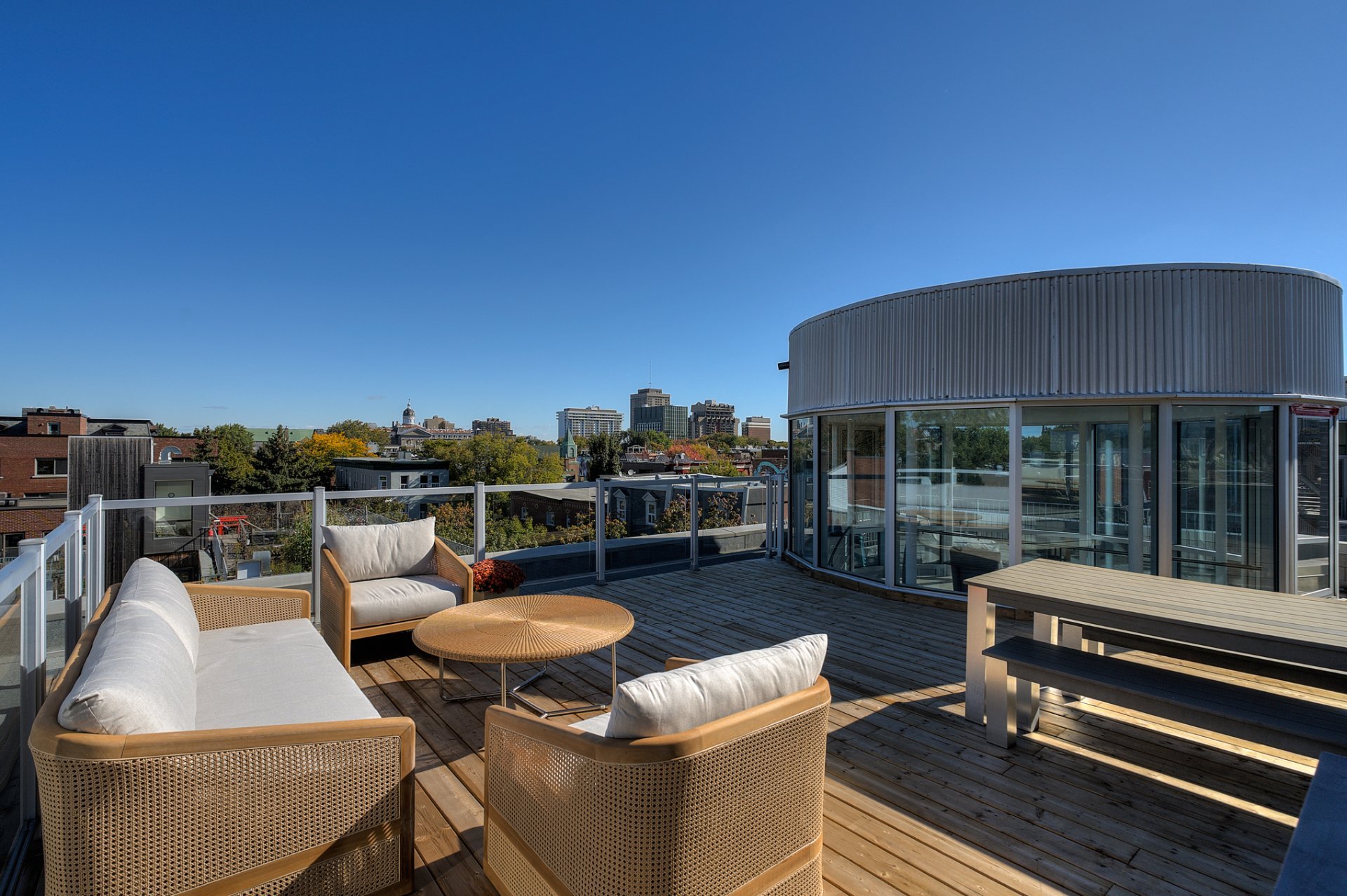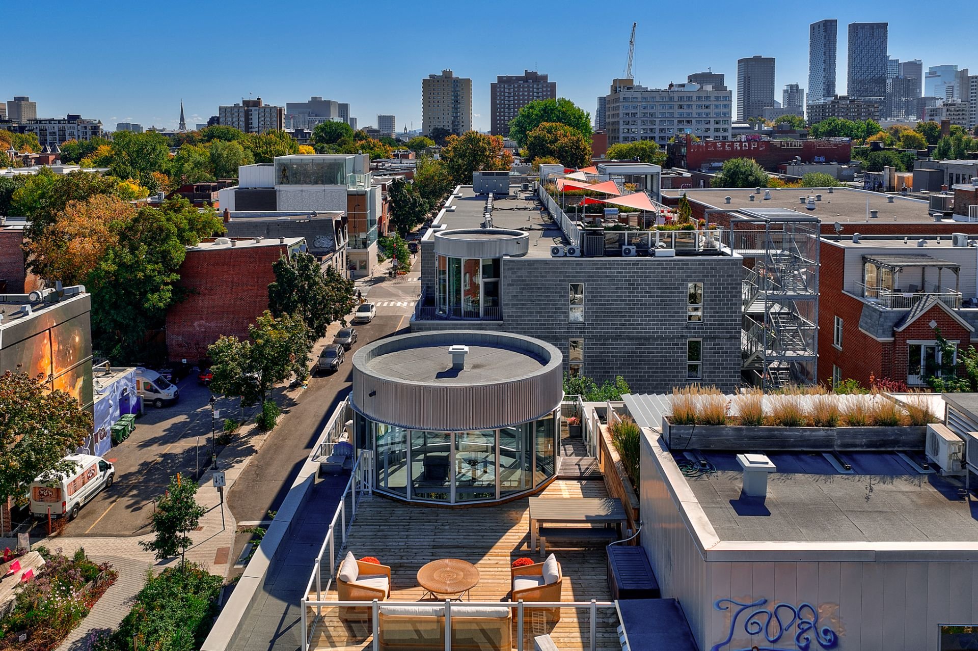 Upstairs, a brilliantly lit mezzanine opens onto a private rooftop terrace--a true oasis perched above the city--offering a breathtaking 360° view of downtown and Mount Royal. A spectacular panorama that turns every moment into a privileged experience.