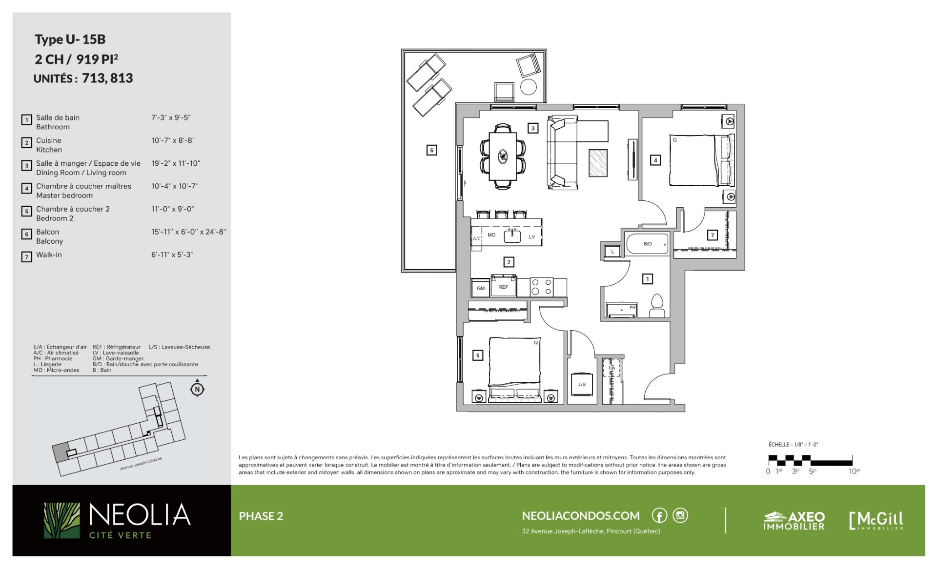 Neolia offers condo living at its best. Located steps away from all services including groceries, pharmacies, schools and public transport and near parks, several municipal water accesses and bicycle paths.