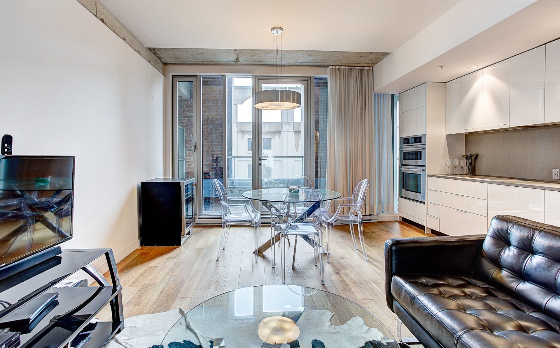 Bank Project, Luxurious and prestigious building! Stunning condo loft style, high ceilings, and top of the line finishings!Ideal for young professional working in the area or for "pied-à-terre"! Best view of Montreal on the rooftop terrace, training pool, jaccuzzi and Bbq area.