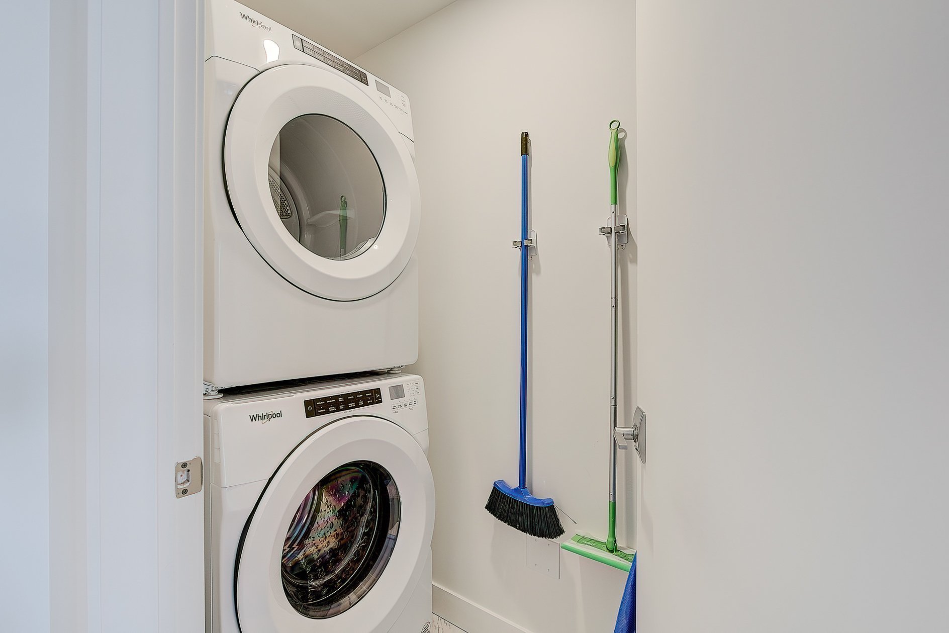 - Réfrigérateur, cuisinière, lave-vaisselle, laveuse, sècheuse, micro-onde, rangement (I-08), stores fait sur mesure, luminieres, et 1 garage intérieur (2-107).