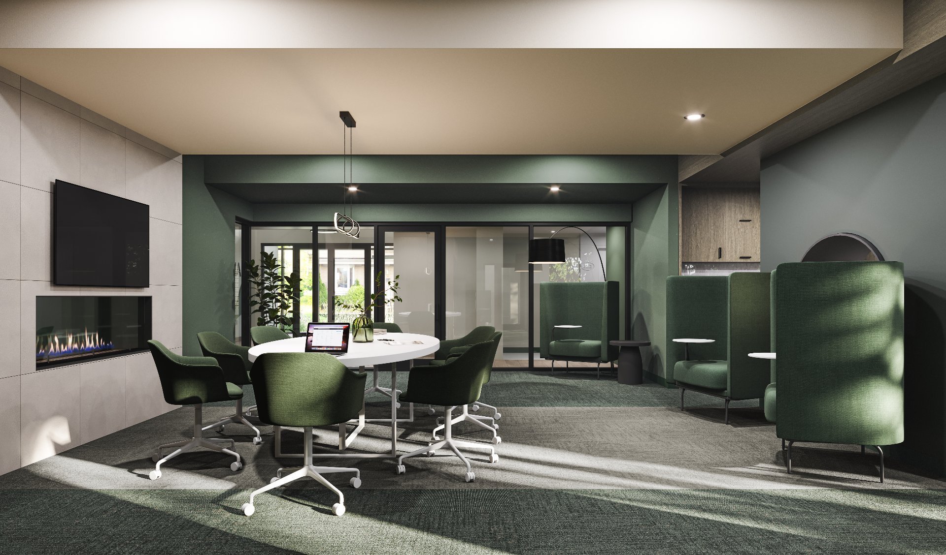Espaces communs comprenant une piscine sur le toit avec terrasse BBQ, salle d'entraînement complète, espace de télé-travail avec WIFI, lounge ainsi qu'une cour intérieure de 95 000 pi2 incluant un espace d'entraînement extérieur, un terrain de pétanque, un parc à chien, bancs extérieurs et un jardin communautaire.