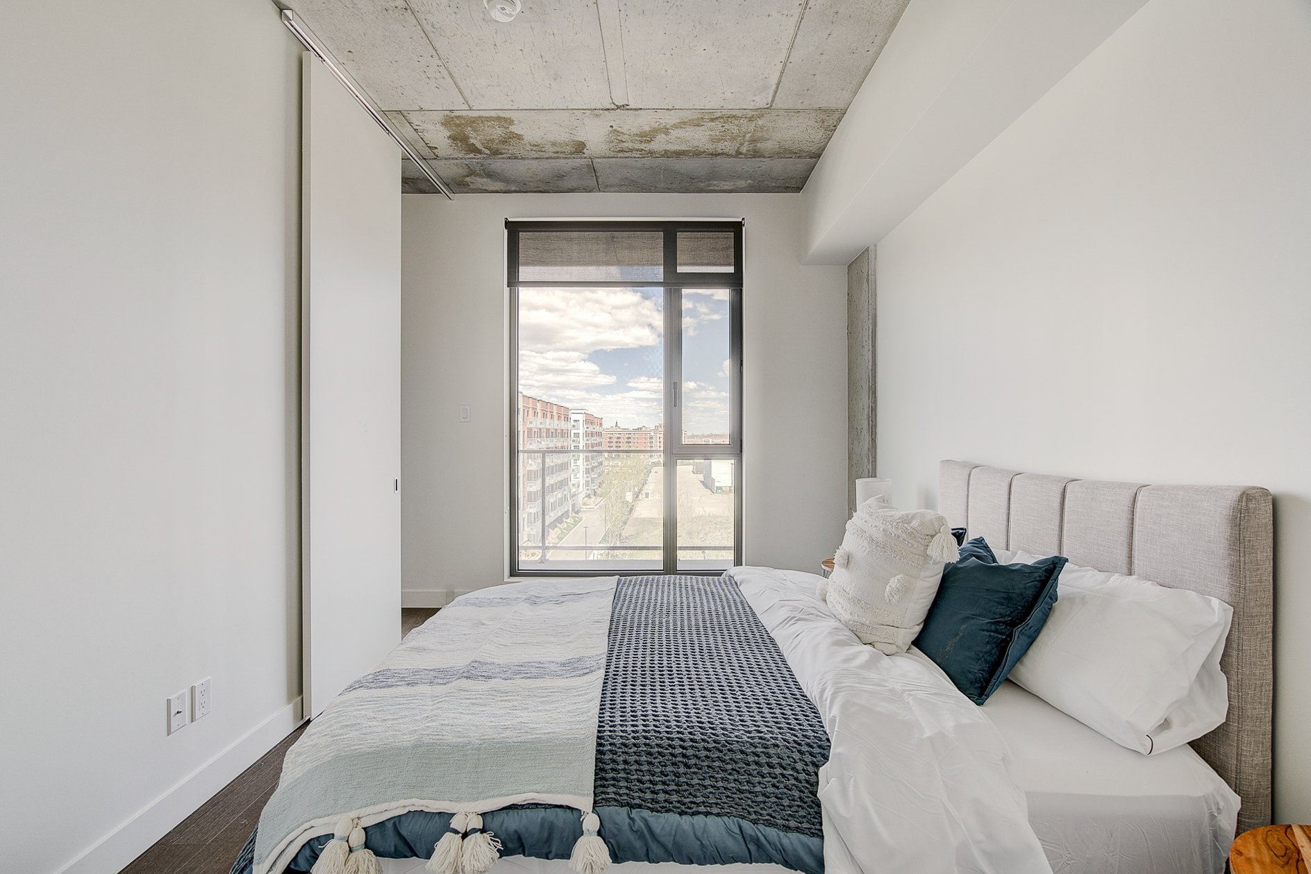 Condo moderne et lumineux situé au 7 étage, offrant des plafonds de 9 pieds, de grandes fenêtres pleine hauteur et un air climatisé central. L'unité bénéficie d'une abondante lumière naturelle, incluant une chambre principale spacieuse et lumineuse, ainsi qu'un grand balcon privé idéal pour se détendre à l'extérieur. Les résidents profitent de l'accès complet à toutes les commodités de l'immeuble, notamment le gym, les salles de jeux et les lounges. Le condo comprend également cinq électroménagers majeurs, assurant confort et praticité au quotidien.