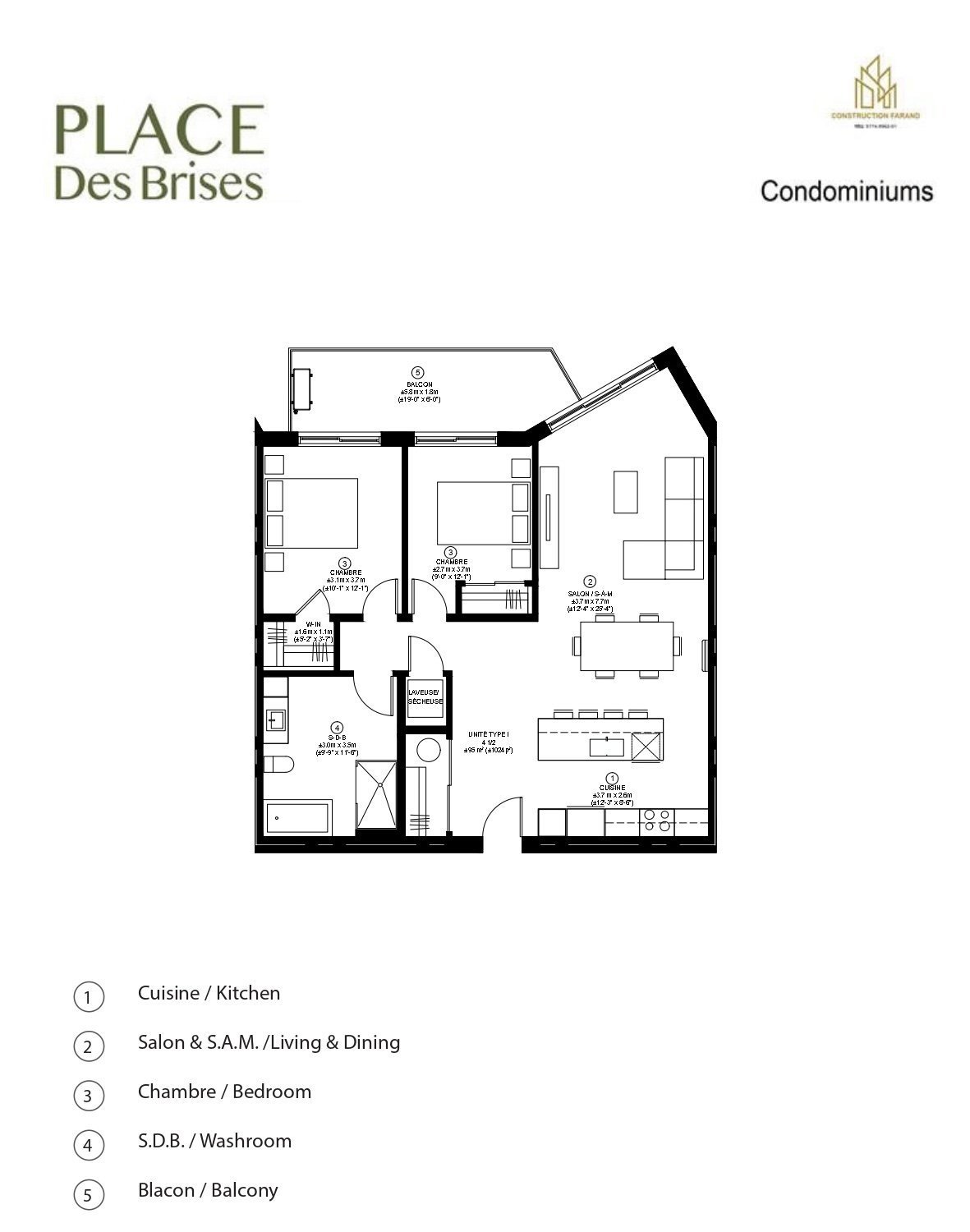 - Les électroménagers de la cuisine et la laveuse et sécheuse sont exclus.