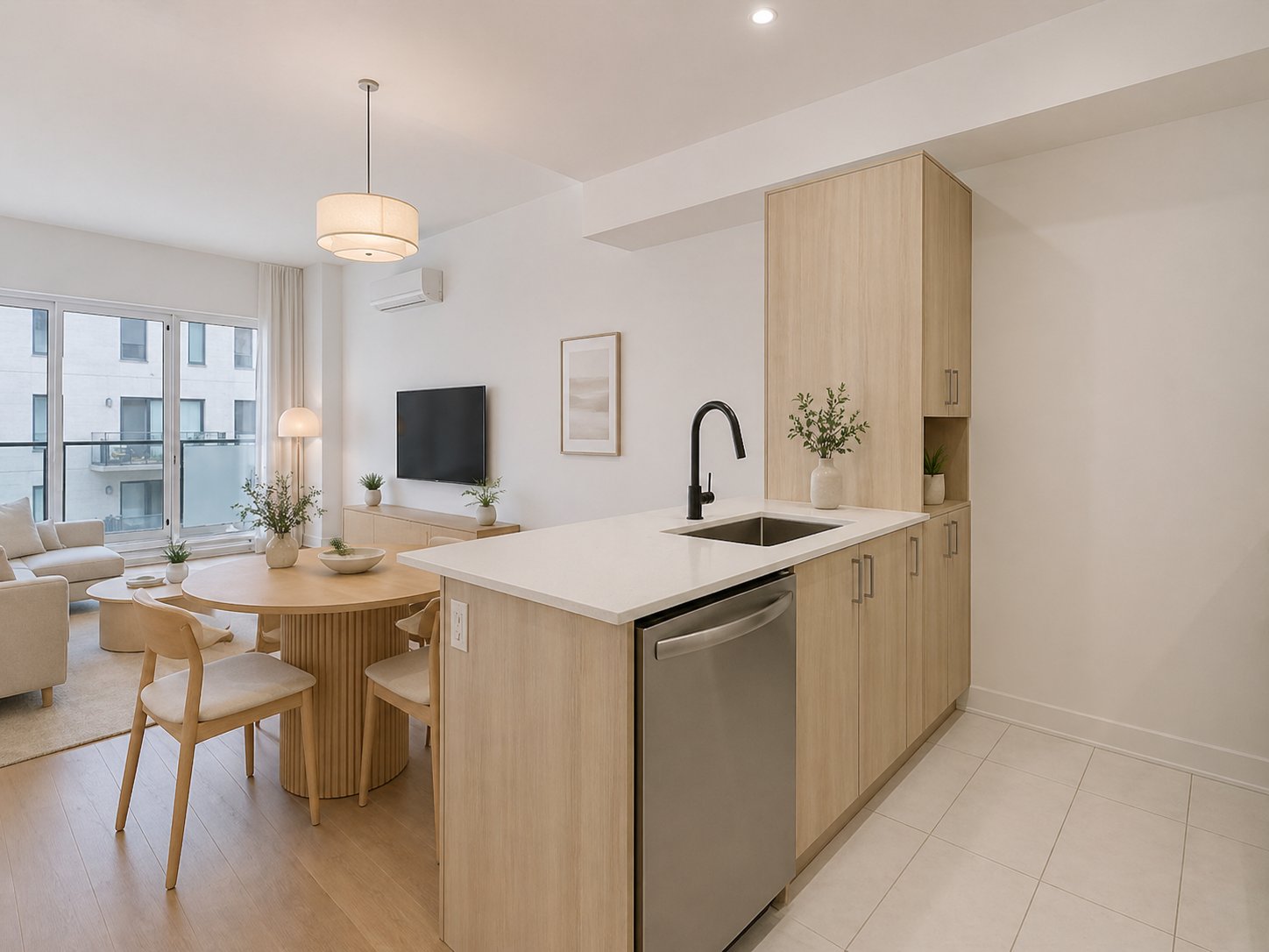 Conçu avec un soin exceptionnel apporté aux moindres détails, cet espace à aire ouverte bénéficie d'une abondance de lumière naturelle, de finitions haut de gamme et de pièces chaleureuses et accueillantes. L'aménagement a été pensé pour maximiser le confort et l'efficacité--idéal pour un jeune professionnel, un couple ou toute personne à la recherche d'un style de vie urbain raffiné.