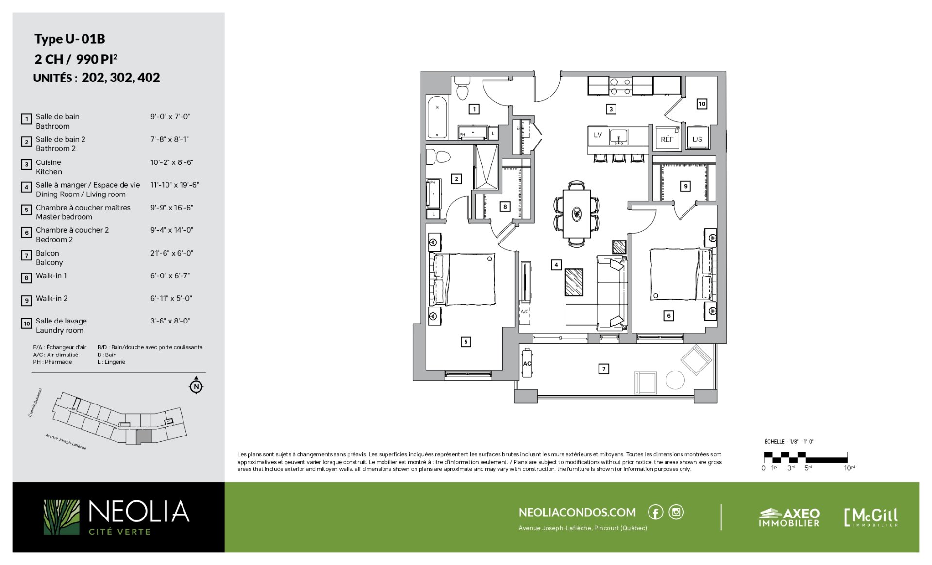 Neolia offre le meilleur style de vie de condo. Situé à quelques pas de tous les services dont épiceries, pharmacies, écoles et transports en commun et à proximité des parcs, du lac et pistes cyclables.