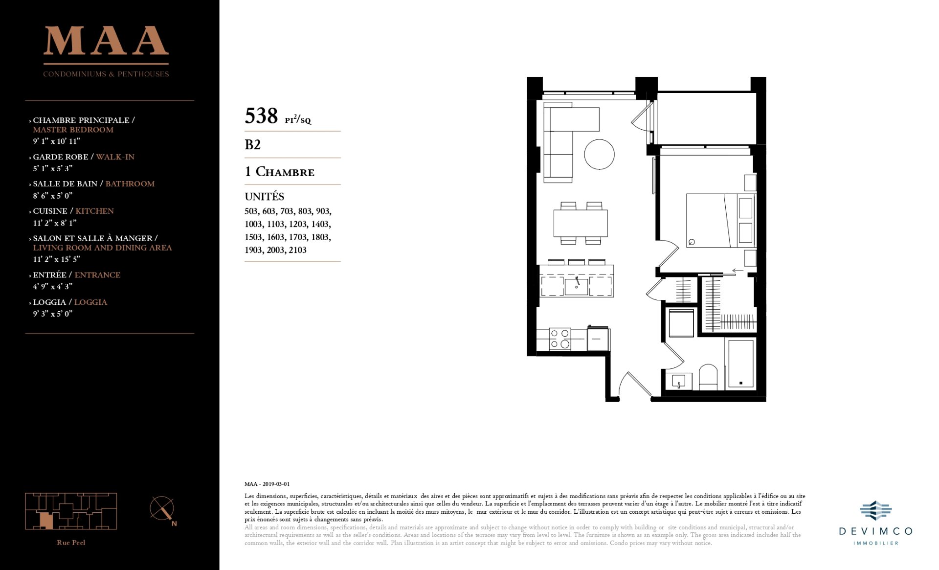 MAA Condominiums réinvente l'ancienne maison du légendaire Club Sportif MAA (rue Peel, depuis 1905) en une adresse résidentielle haut de gamme au coeur du Golden Square Mile. À deux pas du centre des affaires, du métro Peel, de McGill et Concordia, l'immeuble offre un mode de vie urbain privilégié, entouré de restos réputés, boutiques et musées. Architecture raffinée mariant cachet patrimonial et design actuel, avec matériaux nobles. Aires communes dignes d'un club privé : spa scandinave (sauna, hammam), gym complet, espaces détente, terrasse, bar à vin/cellier, en plus des services du Club Sportif MAA. Rangement : 5 000 $ + taxes (selon disponibilité).