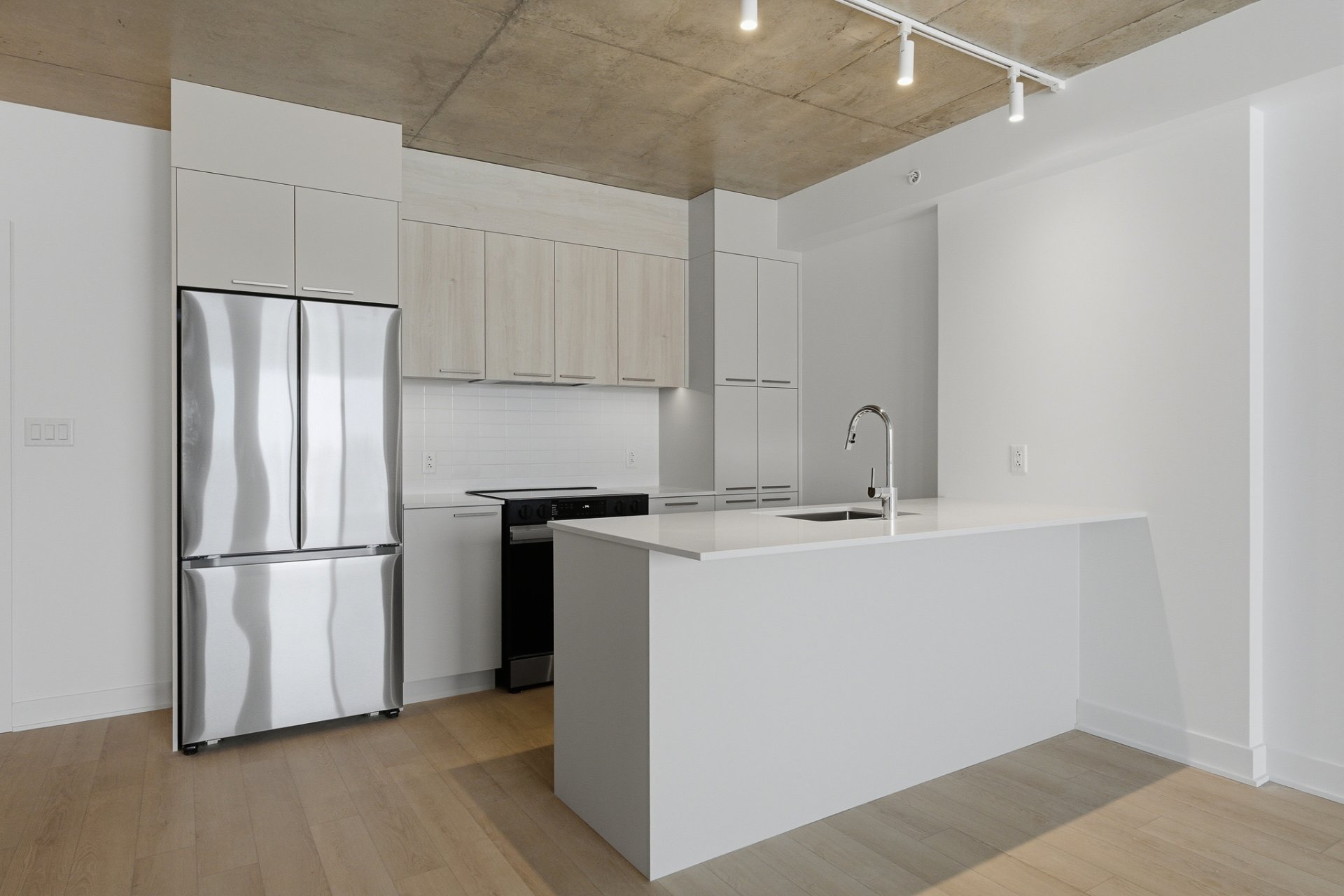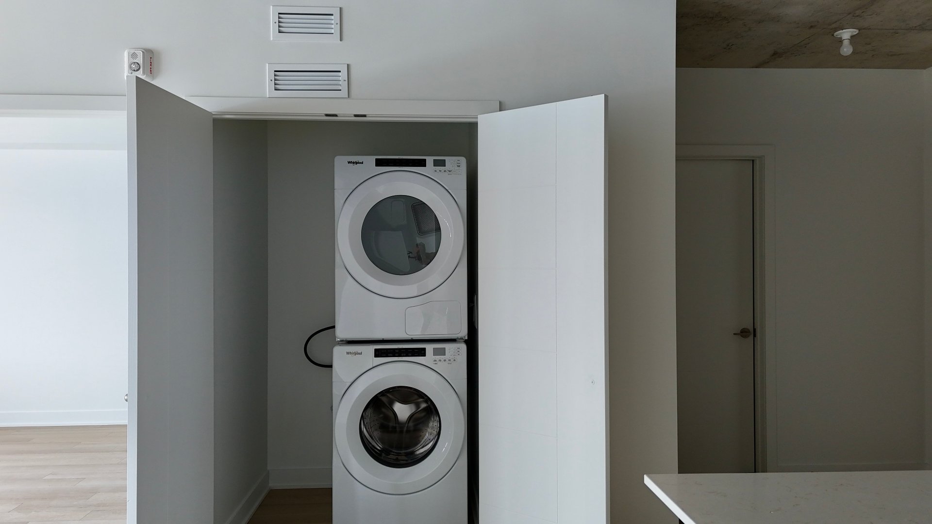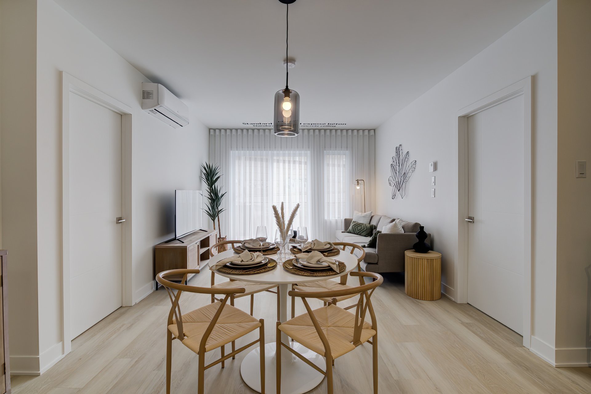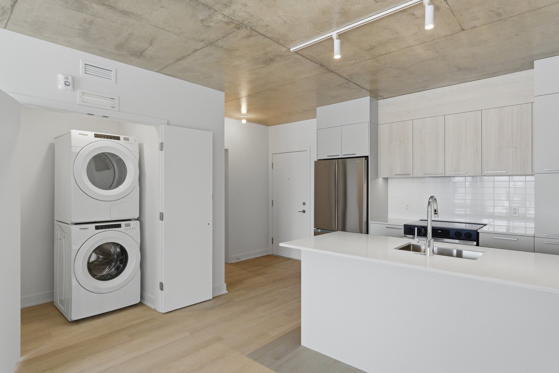 - Réfrigérateur, four, lave-vaisselle, laveuse et sécheuse. Climatisation et thermopompe. Tringle à rideau et luminaire.