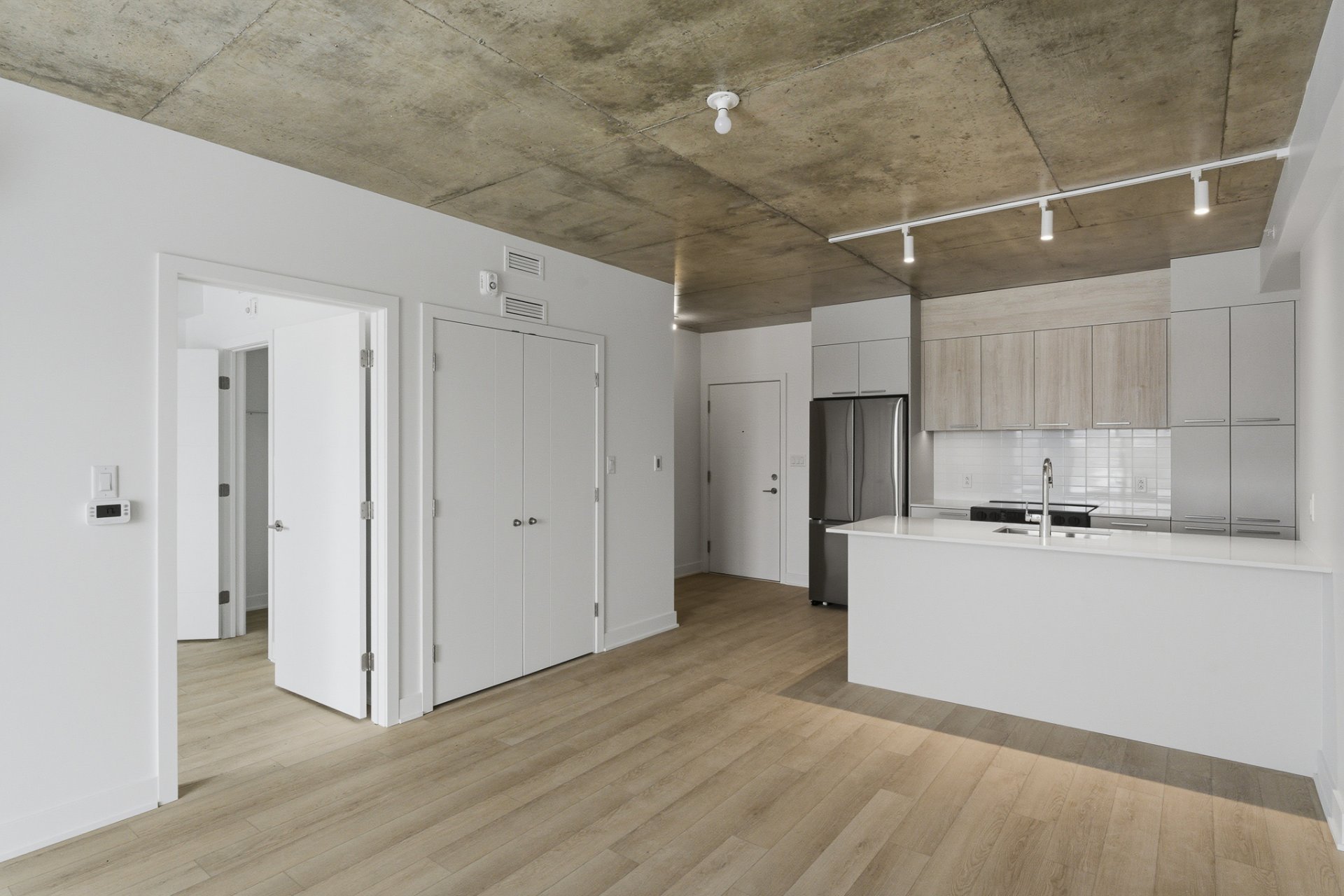 Nouvelle construction disponible immédiatement. Superbe unité d'une chambre de 652 pi² brut située face au jardin, offrant un cadre paisible. Dans la Phase l du projet NEOLIA Cité Verte, immeuble en béton armé reconnu pour sa qualité et son insonorisation, à proximité des commerces, écoles, transports, parcs et pistes cyclables. Espaces communs: piscine sur le toit avec BBQ, gym, espace de travail avec Wi-Fi, lounge et grande cour paysagée. L'unité comprend 1 stationnement intérieur, 1 rangement, électroménagers Energy Star, laveuse-sécheuse, comptoirs en quartz, planchers SPC, dosseret en céramique, climatisation murale(thermopompe)