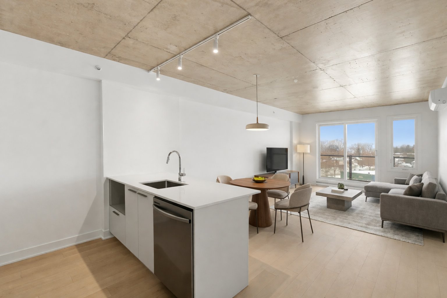 Condo #507 - Nouvelle construction pour occupation immédiate, cette magnifique unité d'une chambre offrant 652 pi² brut se distingue par son emplacement de choix face au jardin de la Phase 1 avec balcon, procurant un cadre paisible et verdoyant. Situé dans le projet NEOLIA Cité Verte, un immeuble moderne en béton armé reconnu pour sa qualité, sa durabilité et son excellente insonorisation, ce condo bénéficie d'un accès facile aux commerces, aux écoles, aux transports en commun, aux parcs et aux pistes cyclables, offrant ainsi un mode de vie pratique et urbain. Les occupants profitent également de superbes espaces communs comprenant une piscine sur le toit avec zone BBQ, un gym complet, un espace de travail avec Wi-Fi, un lounge convivial ainsi qu'une grande cour paysagée. L'unité inclut un stationnement intérieur, un espace de rangement, des électroménagers Energy Star, une laveuse et une sécheuse, des comptoirs en quartz, des planchers SPC, un dosseret en céramique, une climatisation murale de type thermopompe, une armoire à pharmacie, des luminaires et de la lingerie, offrant un confort clé en main exceptionnel.