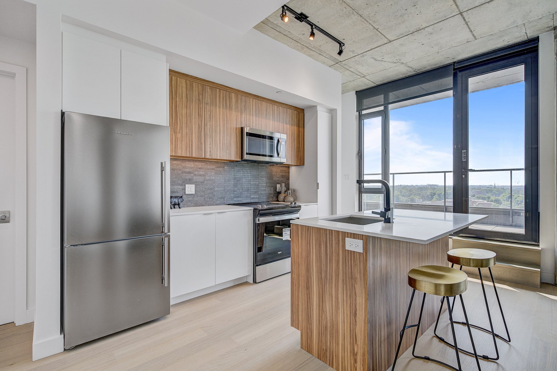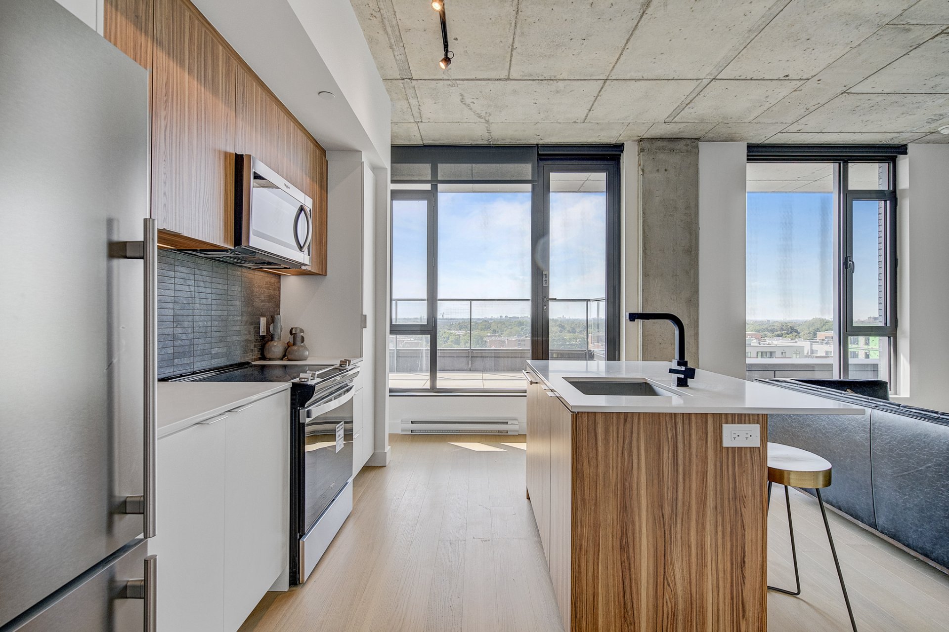 Terrasse Éblouissante : Sortez sur votre terrasse privée, l'endroit idéal pour un café matinal ou un cocktail au coucher du soleil. Ce jardin d'extérieur vous offre des vues à couper le souffle sur le skyline de la ville, en faisant un cadre parfait pour la détente et les rassemblements.