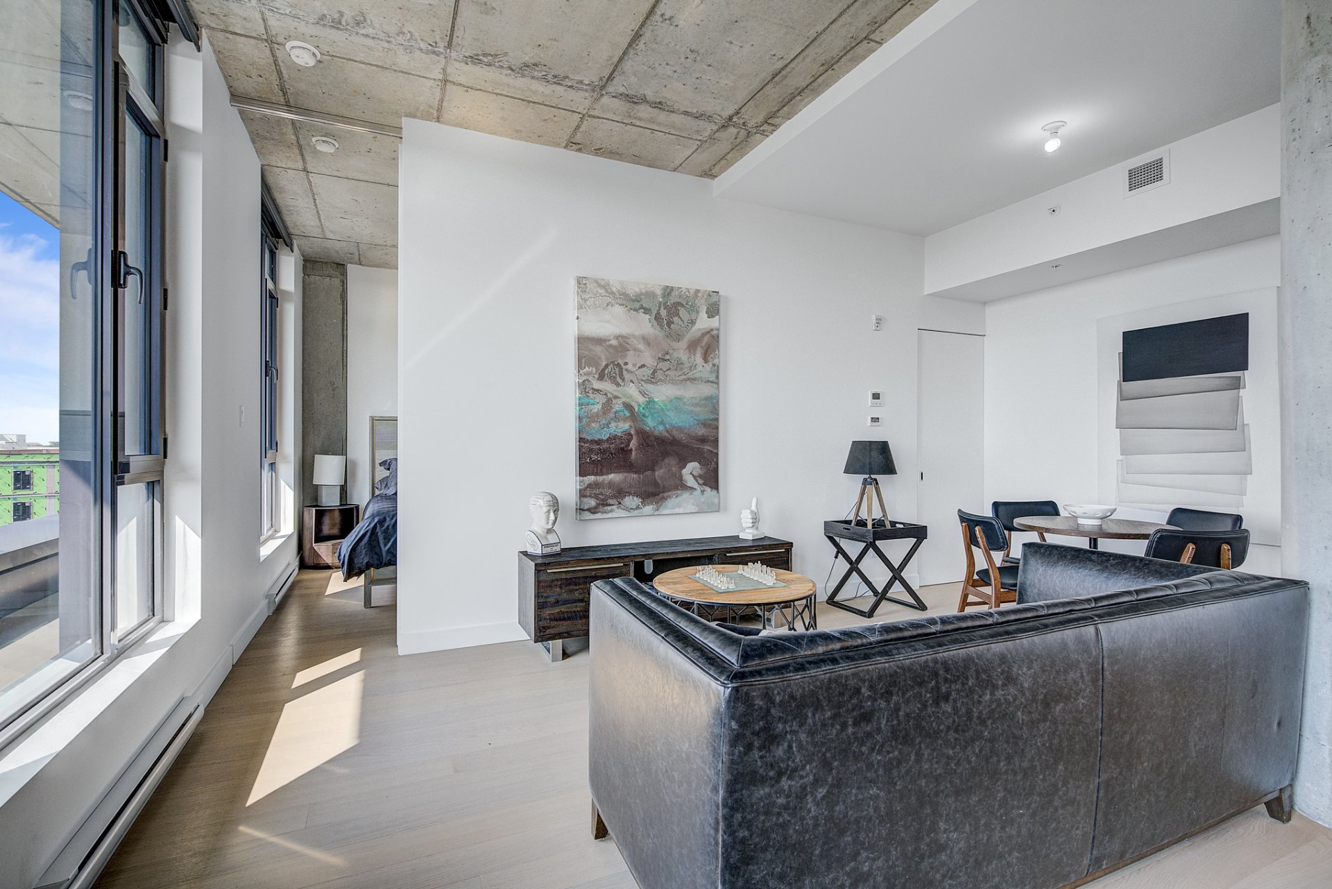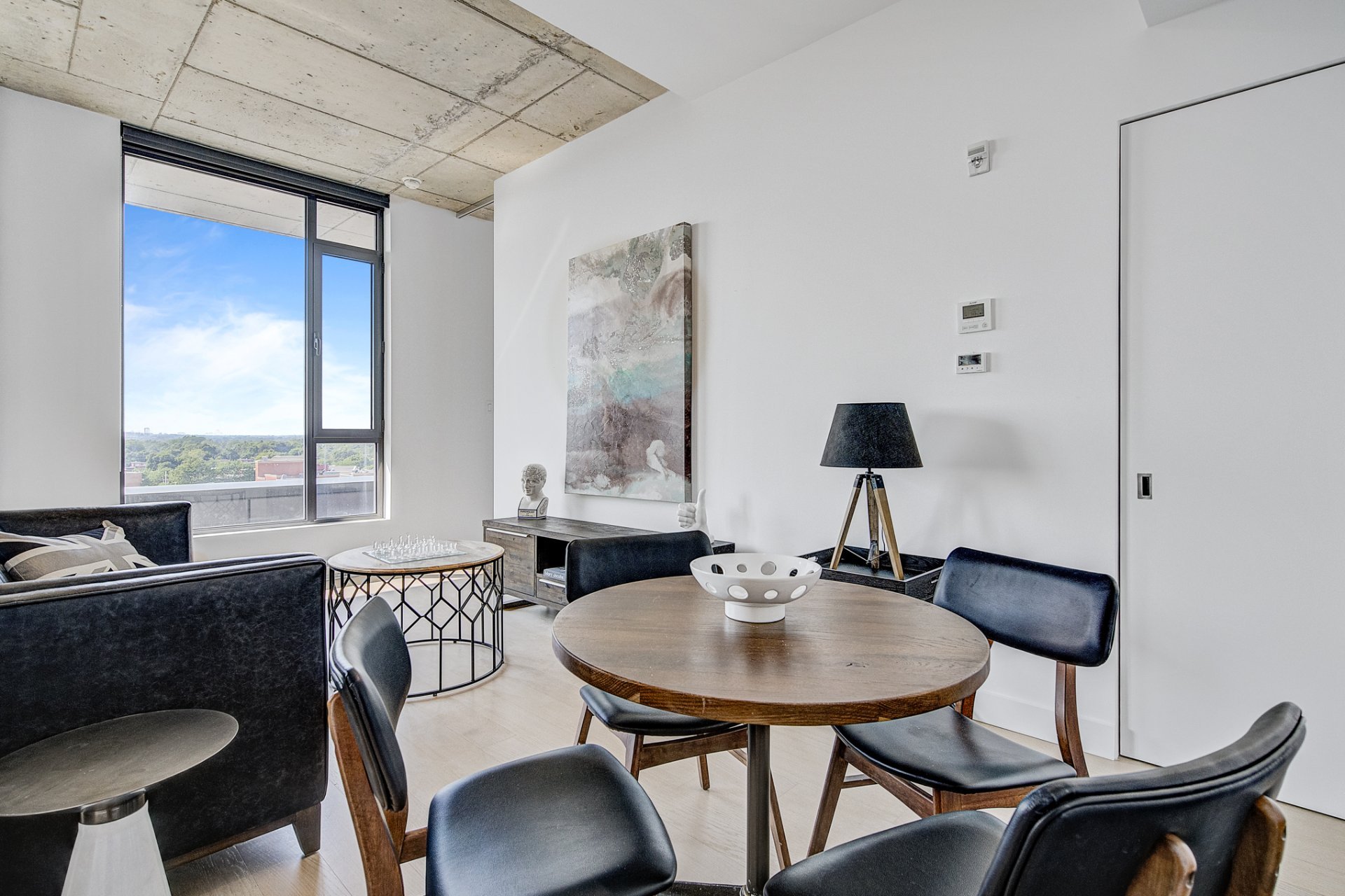 Design Spacieux : Ce penthouse soigneusement conçu bénéficie d'un agencement à concept ouvert, alliant esthétique moderne et fonctionnalité. De hauts plafonds et de grandes fenêtres inondent l'espace de lumière naturelle, créant une atmosphère accueillante.