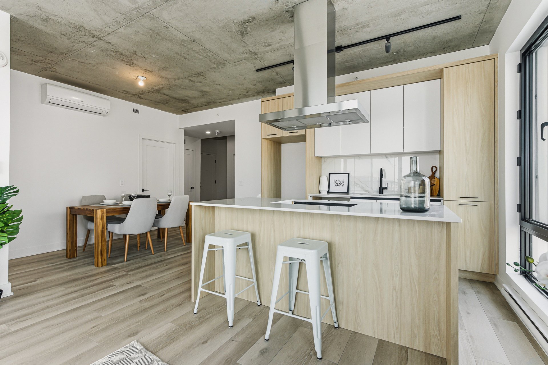 - Inclus 1 stationnement intérieur, 1 rangement, électroménagers de la cuisine de type Énergie Star, laveuse/sécheuse, comptoir de quartz, plancher d'ingénierie SPC, dosseret en céramique, armoire à pharmacie, lingerie, climatisation murale, échangeur d'air, éclairage LED sous les armoires et plus.