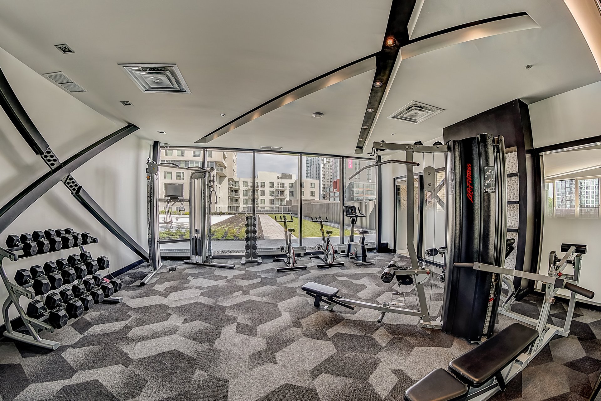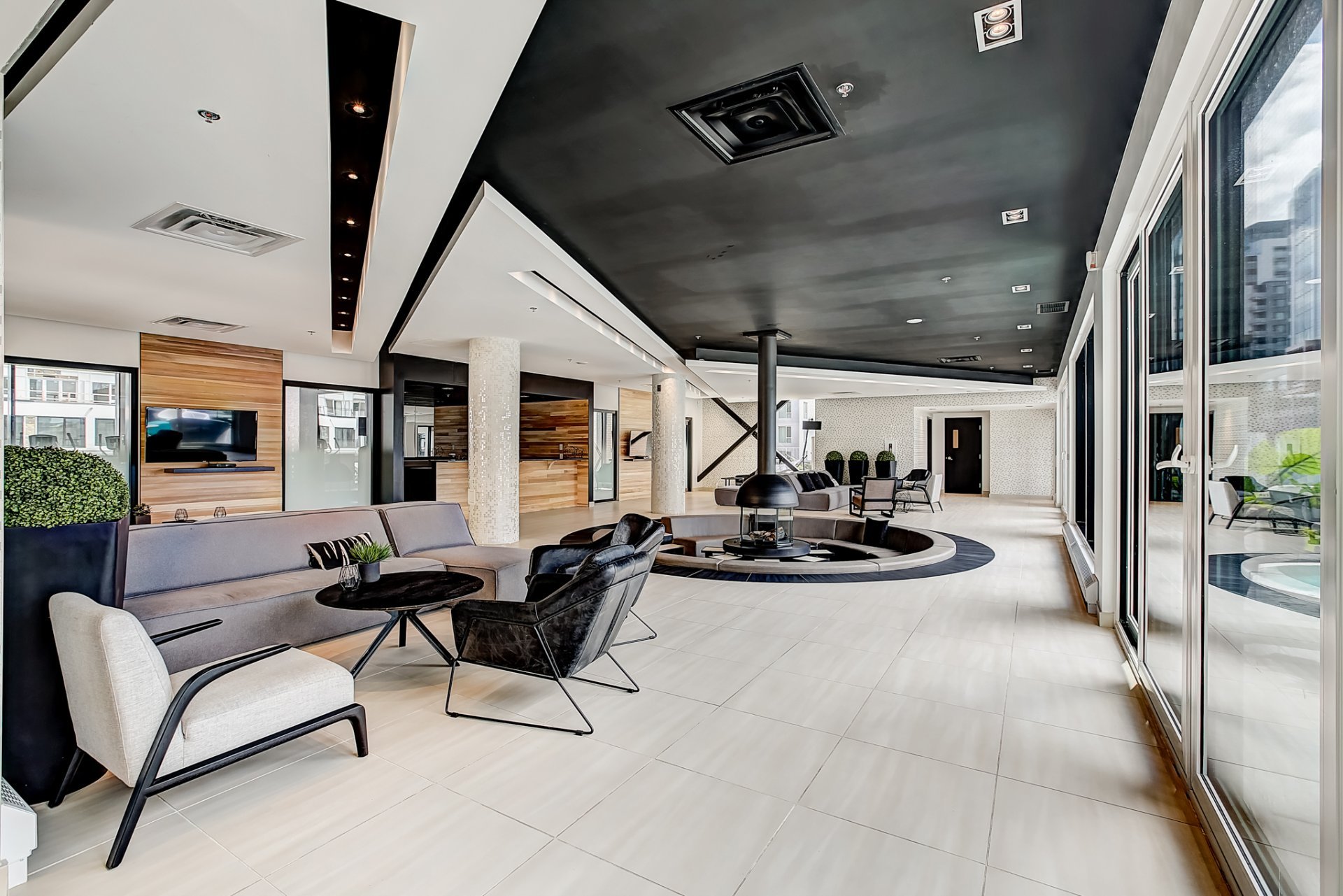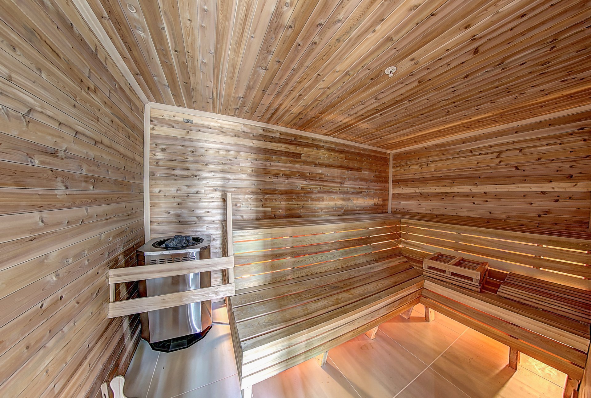 - Un chalet urbain avec sauna, spa, gym, foyer intérieur ainsi qu'un lounge.