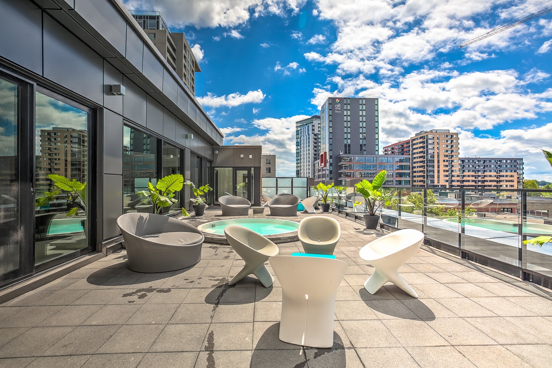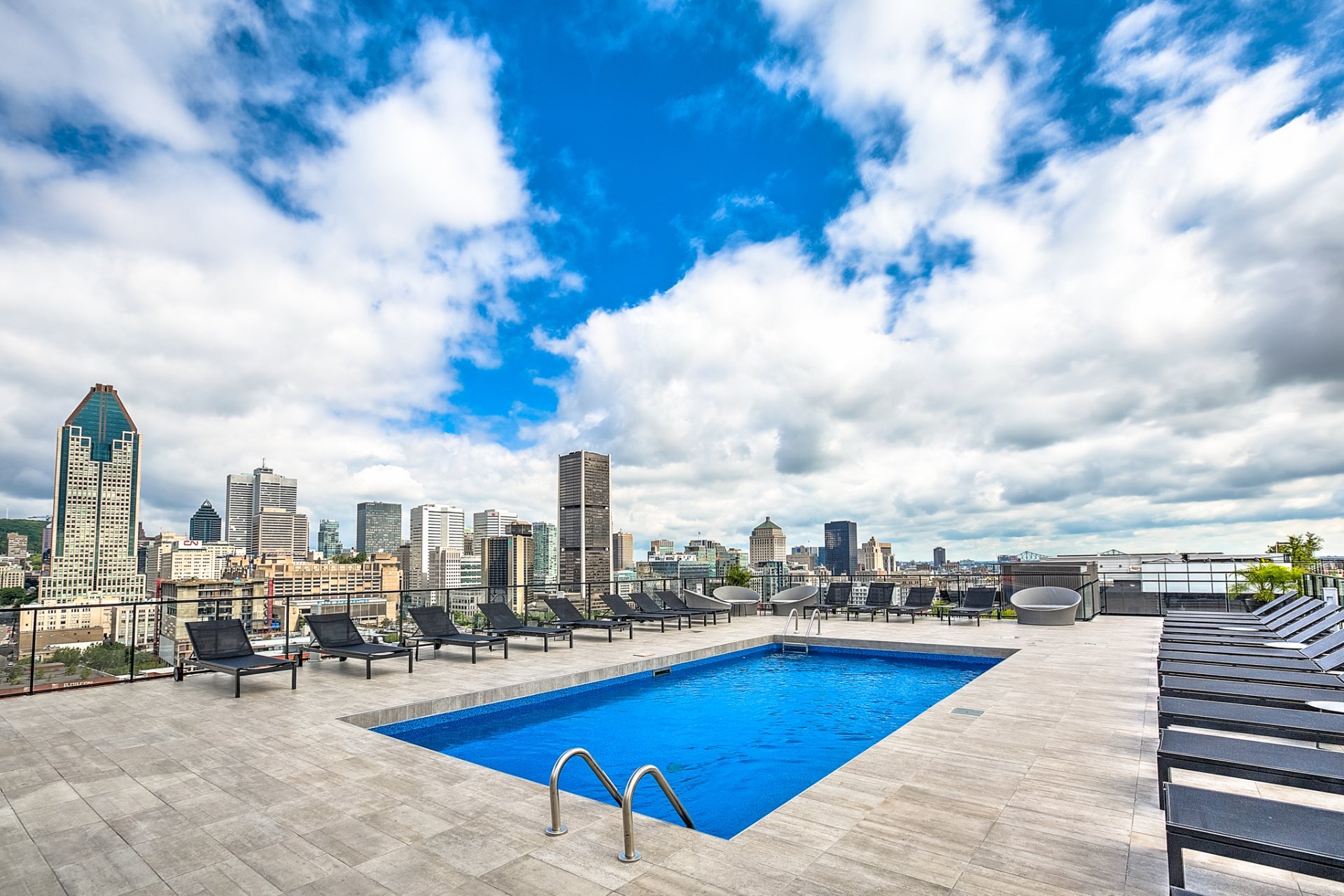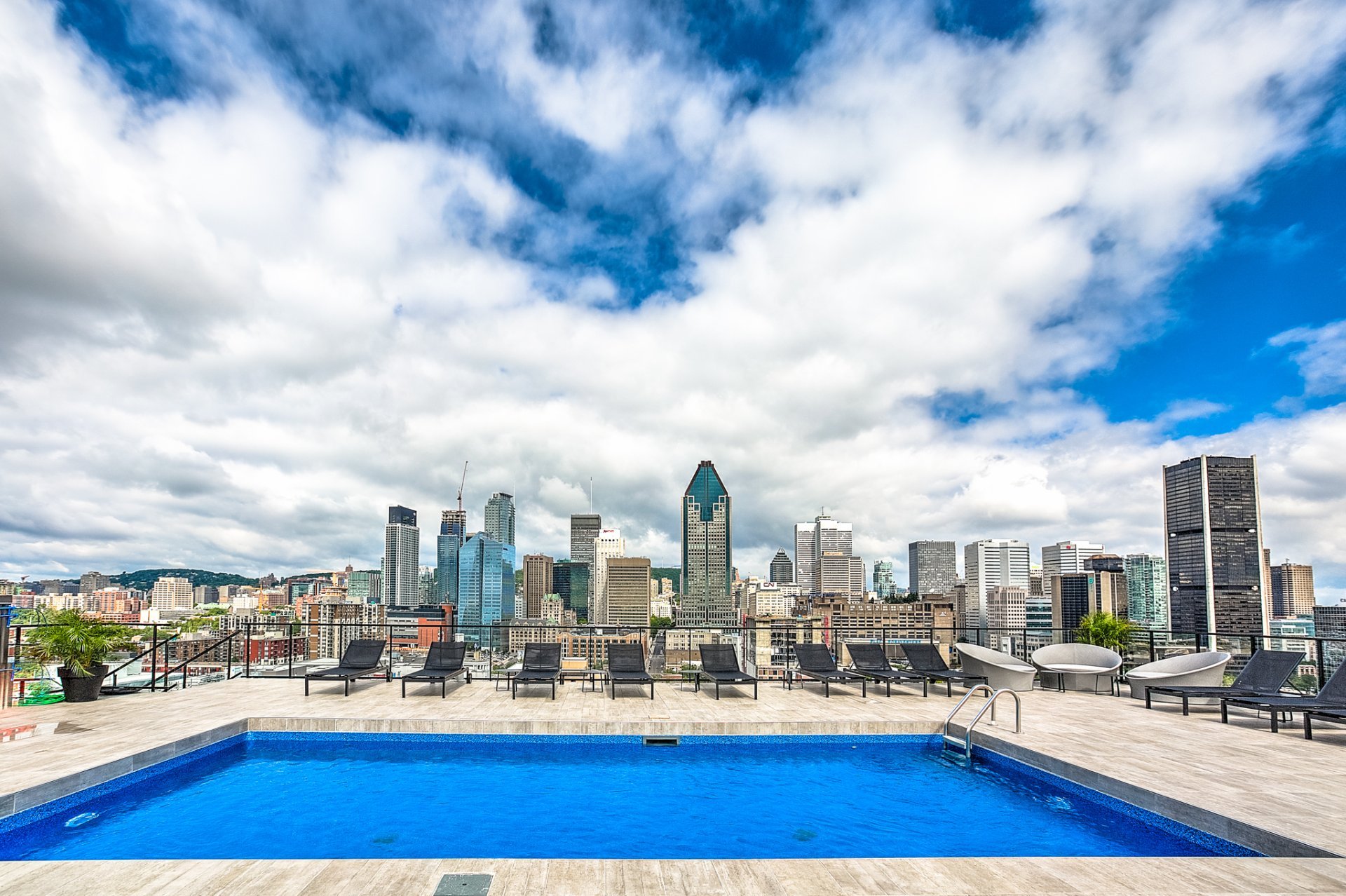 - Piscine sur toit et terrace avec vue panoramique du centre-ville de Montréal.