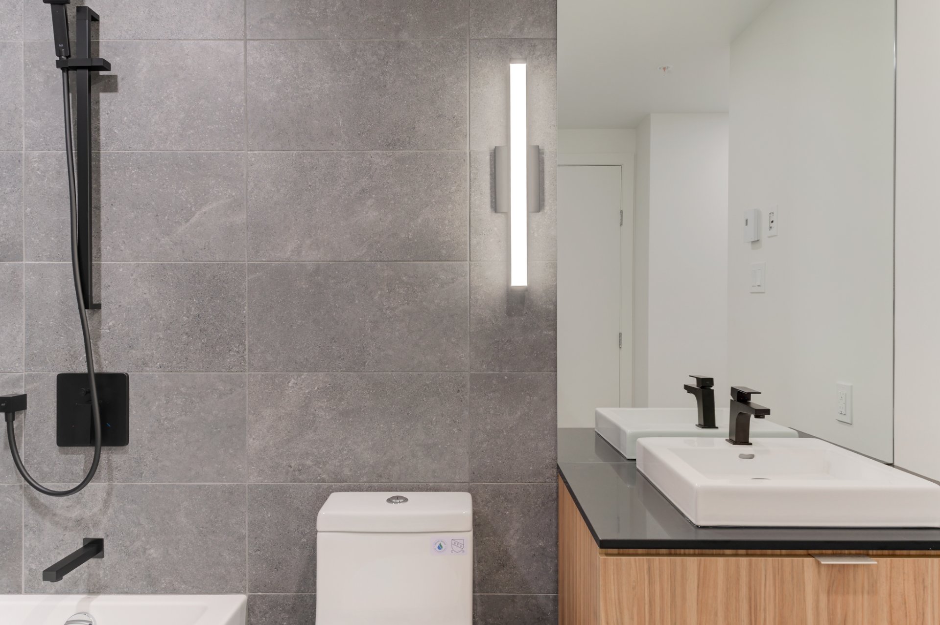 Ce condo lumineux et moderne offre 1 chambre + un bureau fermé. Le bureau est une vraie pièce fermée avec une porte et un demi-mur en verre, parfait pour travailler à la maison ou comme petite chambre d'appoint. L'unité est orientée vers l'ouest, donc vous profitez de beaux couchers de soleil chaque soir. Il y a des fenêtres pleine hauteur qui laissent entrer beaucoup de lumière naturelle. En plus, il y a des fenêtres qui s'ouvrent dans chaque pièce, ce qui donne une super belle circulation d'air et une ambiance très agréable.