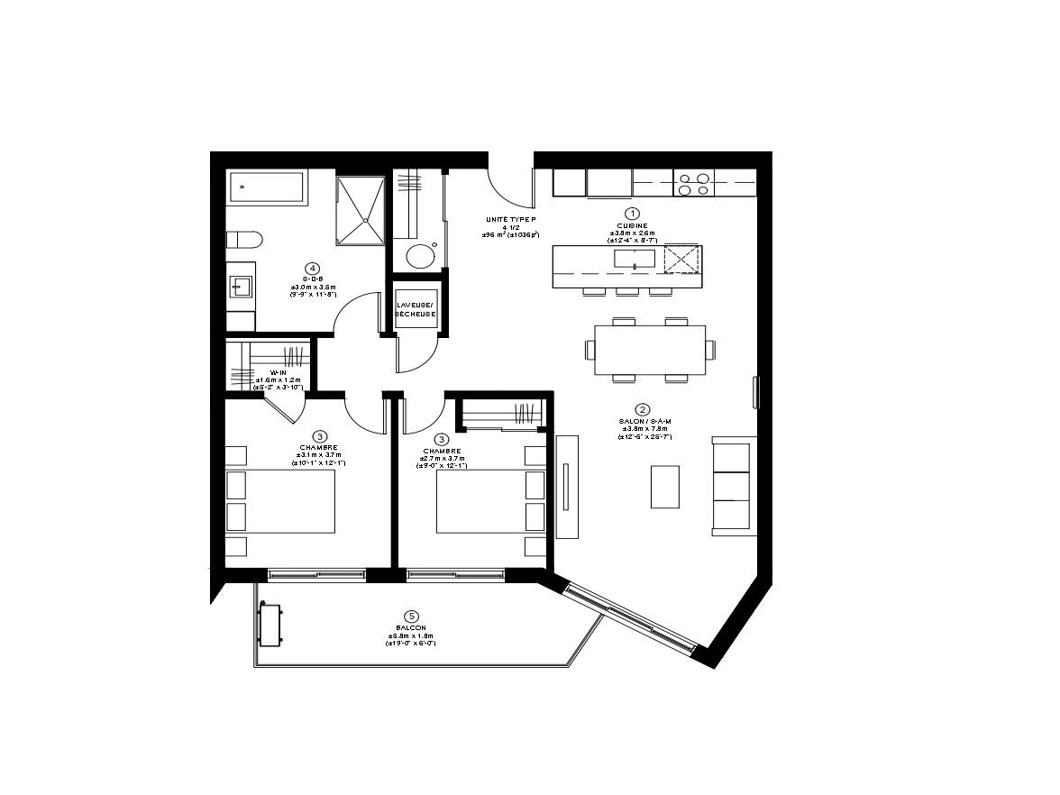 - Les électroménagers de la cuisine et la laveuse et sécheuse sont exclus.