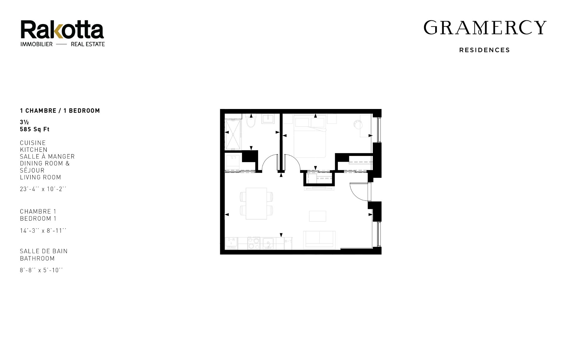 Pour toute information ou pour une visite, veuillez envoyer un courriel à : info@rakotta.com Bienvenue au Gramercy. Magnifique maison de ville nouvellement construit. Le Gramercy est votre espace de vie cosmopolite au coeur de la ville. Appartement de 585 pc. 1 chambre et 1 salle de bain à louer. TOUT est inclus : eau chaude, laveuse/sécheuses, électricité, chauffage, AC et Internet haute vitesse (1.5 gig). Garde de sécurité sur place 24/7. Non Inclus : Meuble, Lave-Vaisselle. Seulement les chats sont acceptés, pas de chiens. Emménagez, déballez et faites comme chez vous. D'autres appartements sont disponibles.