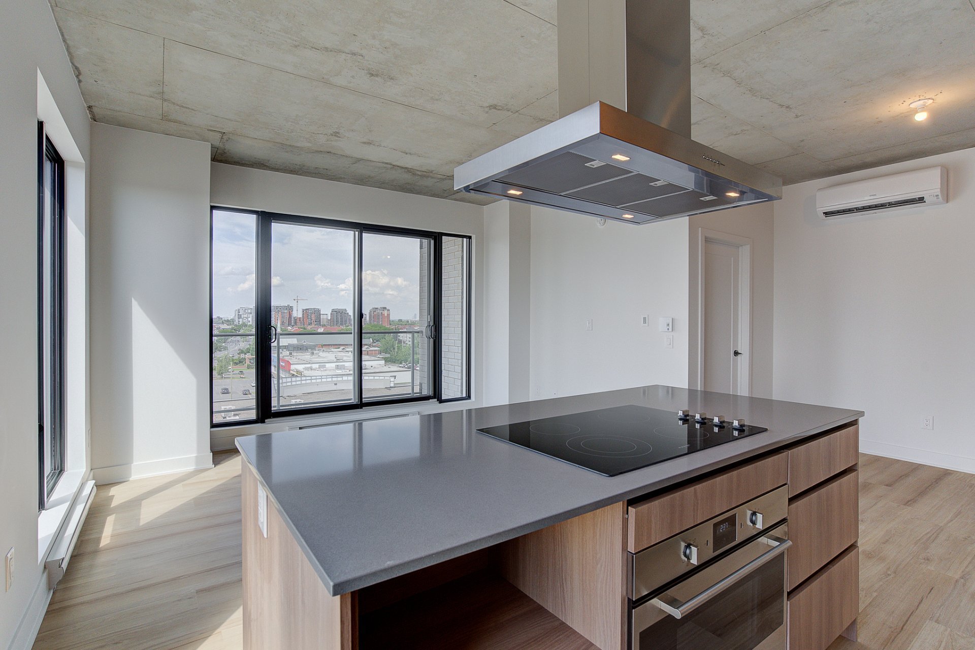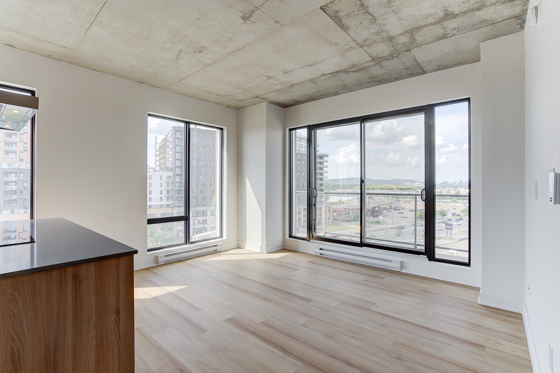 Insonorisation supérieur avec une structure de béton armé de 9'', plafond exposé béton entre 9' et 13' de hauteur, 16 étages, 3 ascenseurs à haute vitesse, chute à déchets ainsi que 3 étages de stationnement intérieur.